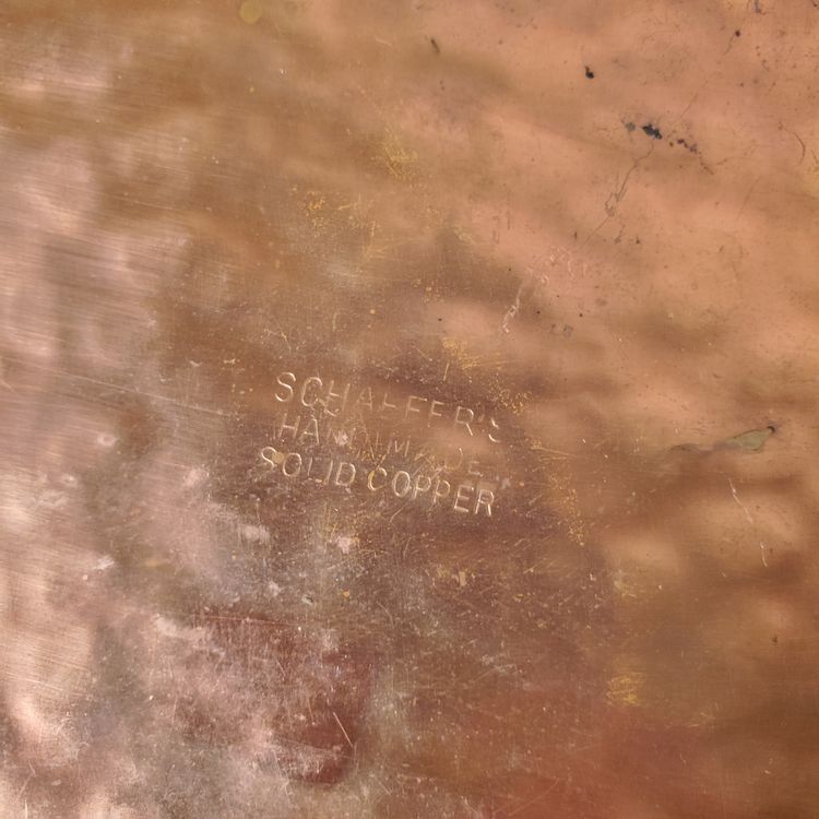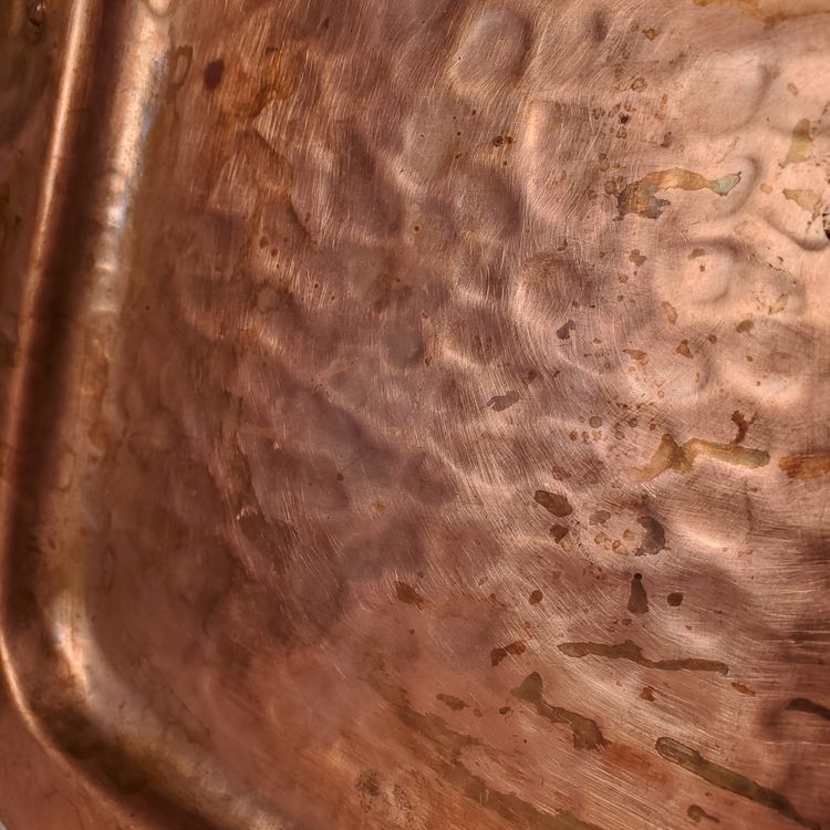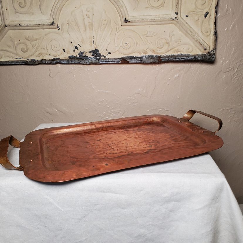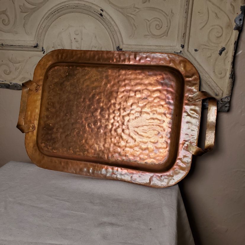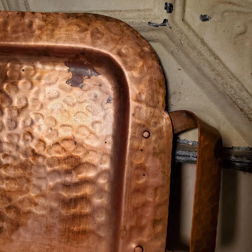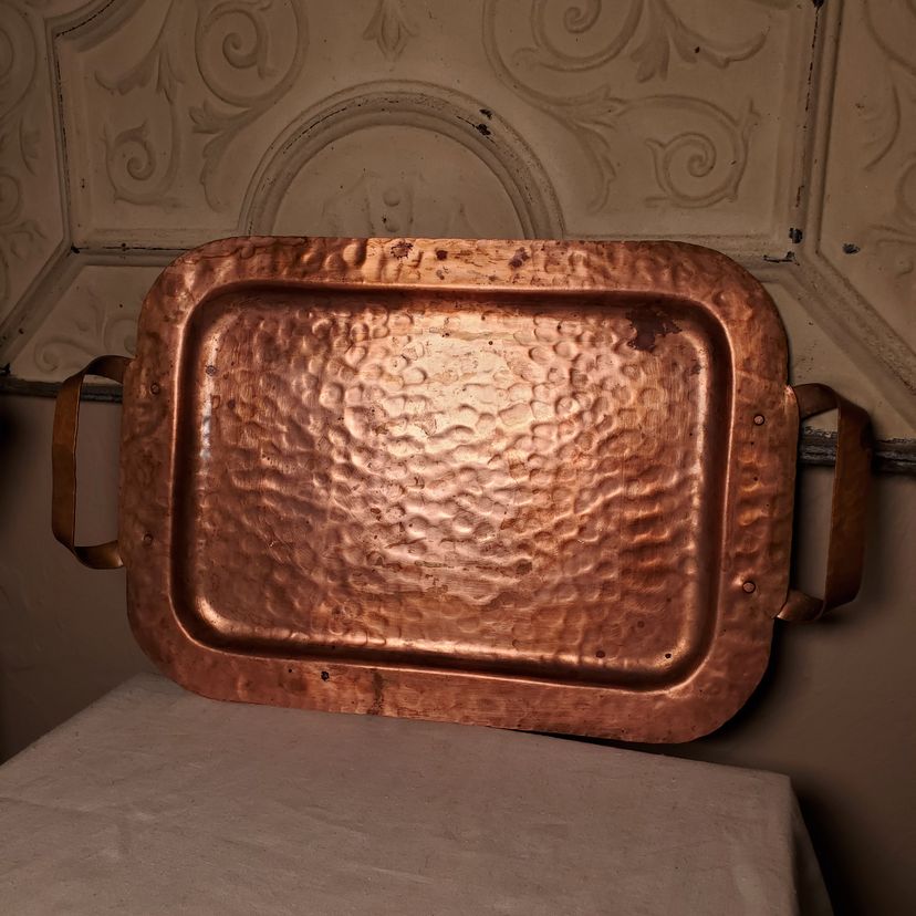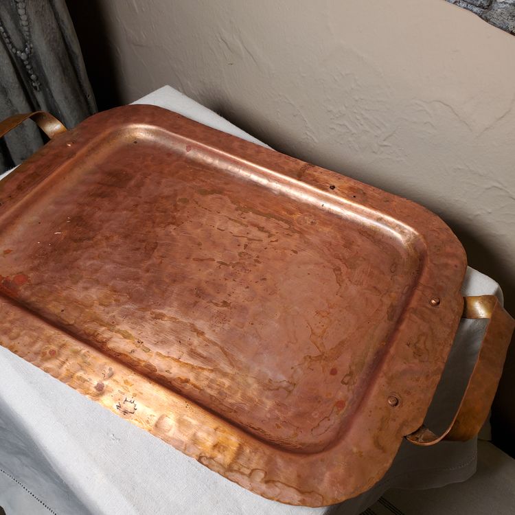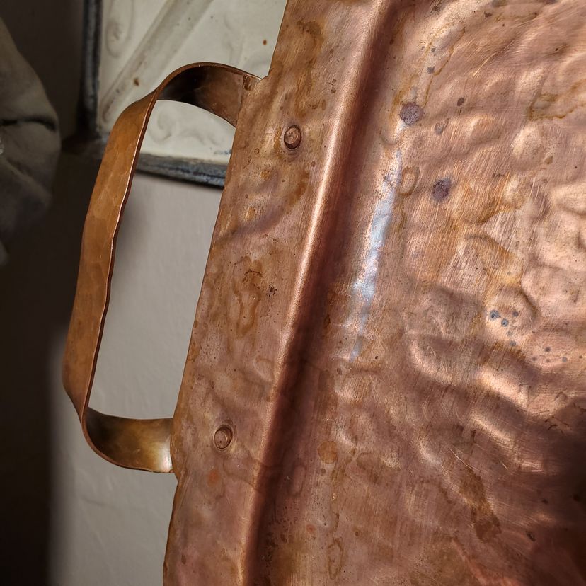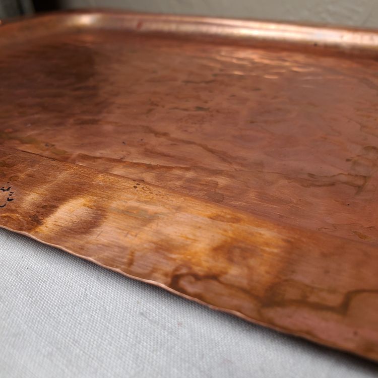 Beautiful little hand hammered copper tray. This piece is well loved with lots of use, marks and patina.