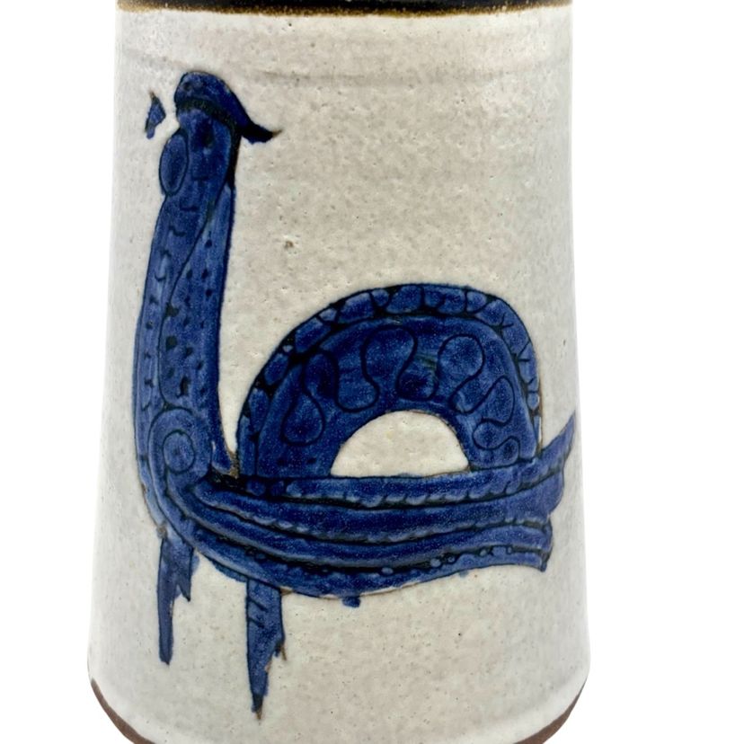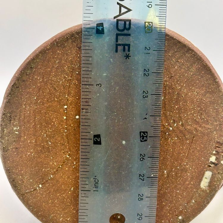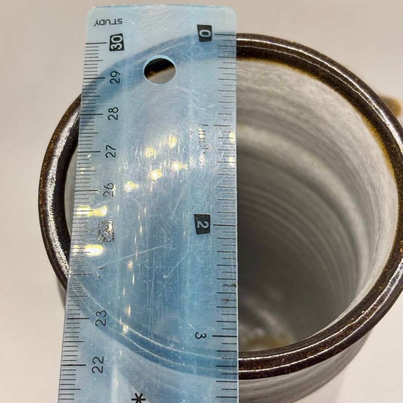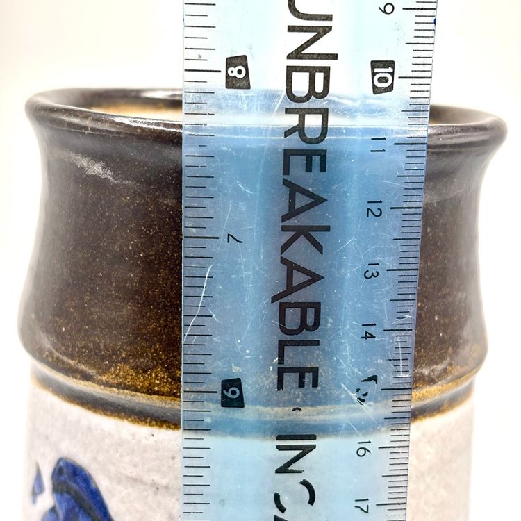 7 3/4” tall 4” wide at bottom 3” wide at top Stamped on bottom Would be a beautiful vase