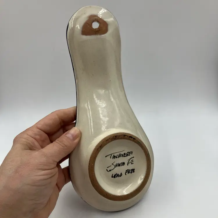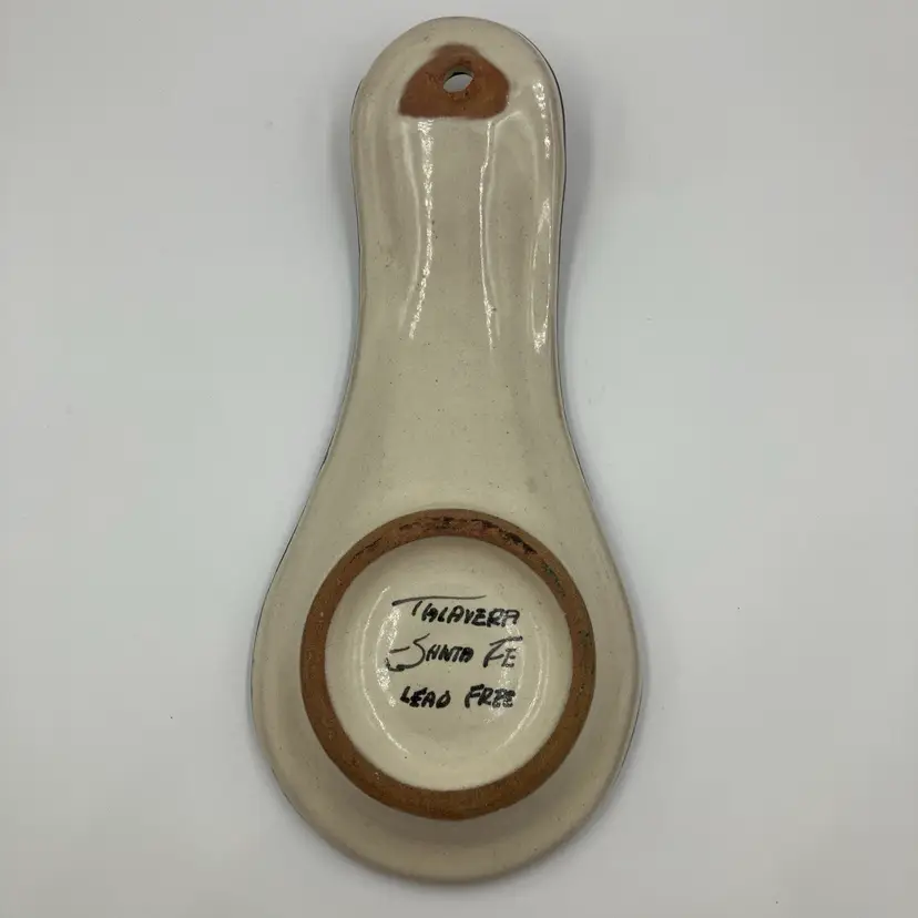 We are selling this gorgeous handmade and hand painted Mexican Talavera spoon rest. It measures approximately 9 1/4” long. It’s in excellent condition. There are no chips or cracks.