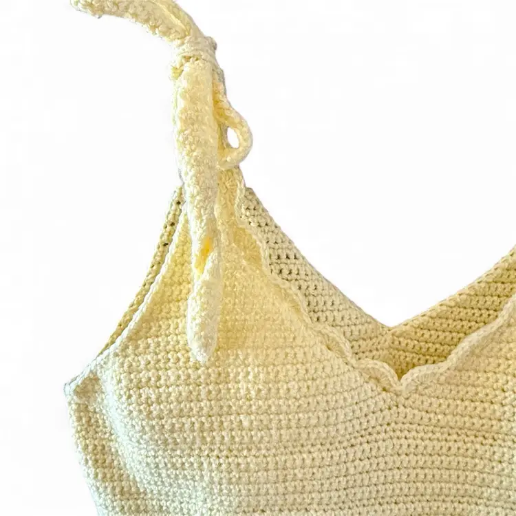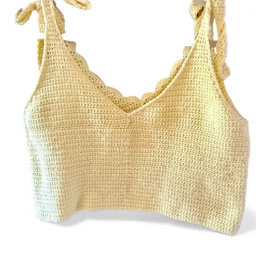 Handmade Yellow Crochet Crop Top with Shoulder Ties Sz. Lg/XL