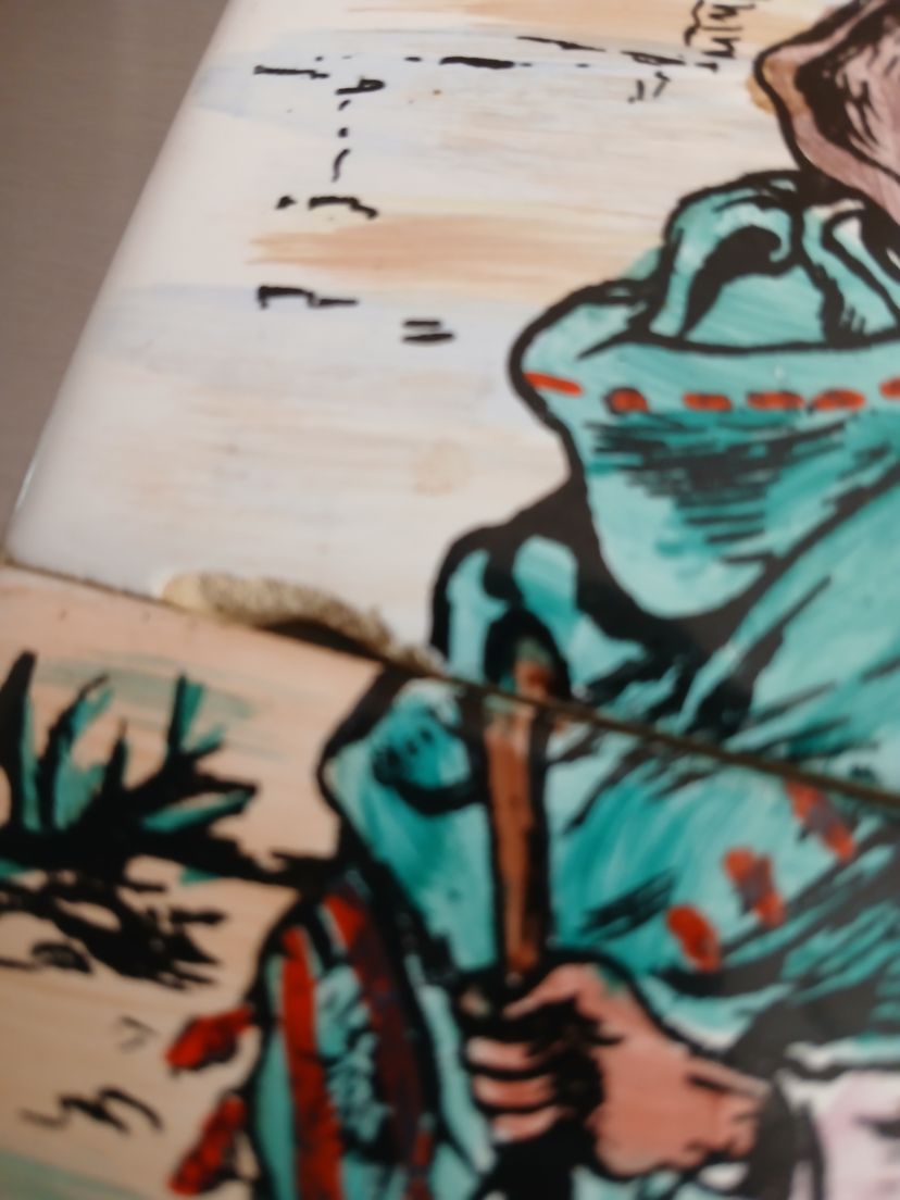 Beautiful handpainted and Signed ceramic tile mural consisting of 15 individual tiles. Three of the tiles are damaged with two on the top row having been broken into two pieces and repaired and one chipped in the middle row. All of these are shown clearly in the photos. Please ask if you have questions. These individual tiles are waiting for their permanent installation per the artist's preference. Gorgeous and unique.