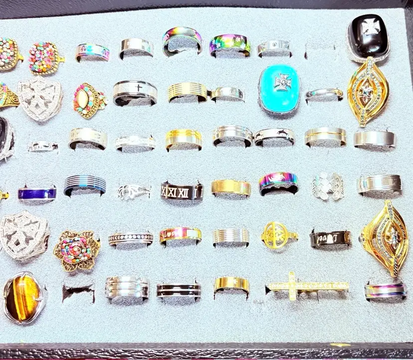 66 Rings from Hawaii. All Costume Jewelry Rings. Men, Women & Teens, a Couple of Toe Rings too. Beautiful made. New Old Stock. Come in a Black Ring Suitcase. π§³ 15x9x2.5β All Sizes. Average $20 & Up. Perfect for Someone who has a Store. Heavy Duty Steel and Rhinestones. The Real Deal. No Brands.