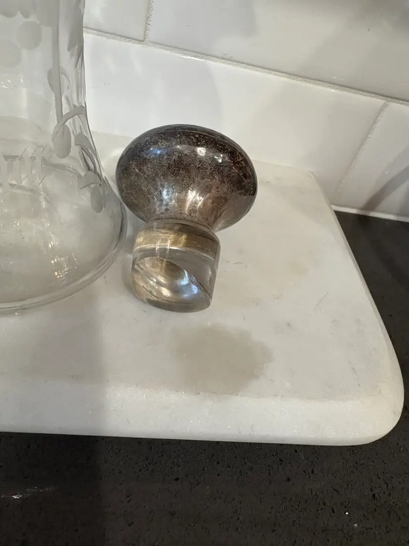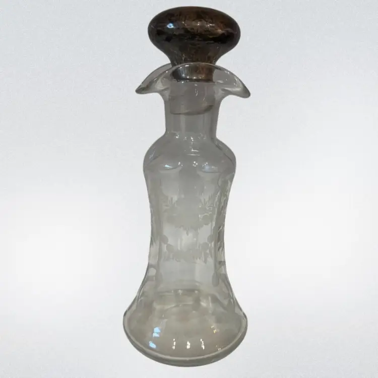 Hawkes Oil/Vinegar Cruet W/Sterling Top Etched Flowers