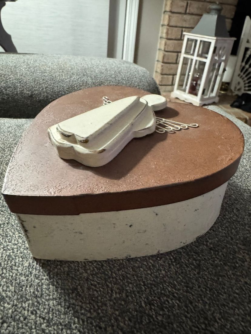 This is the perfect box for storing small treasures, jewelry, or as a sweet decorative item. Approximate Measurements: 6.5” X 6.5” X 2.5”
