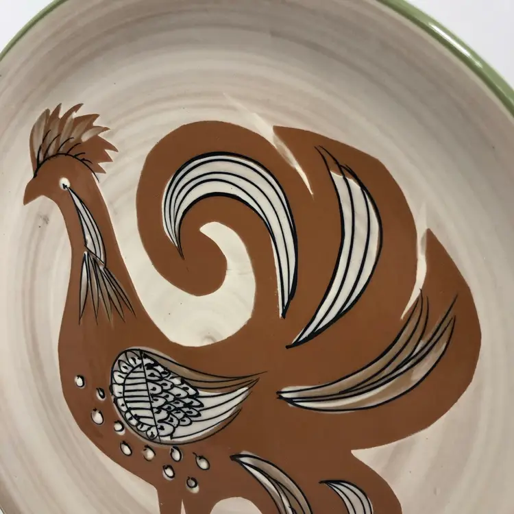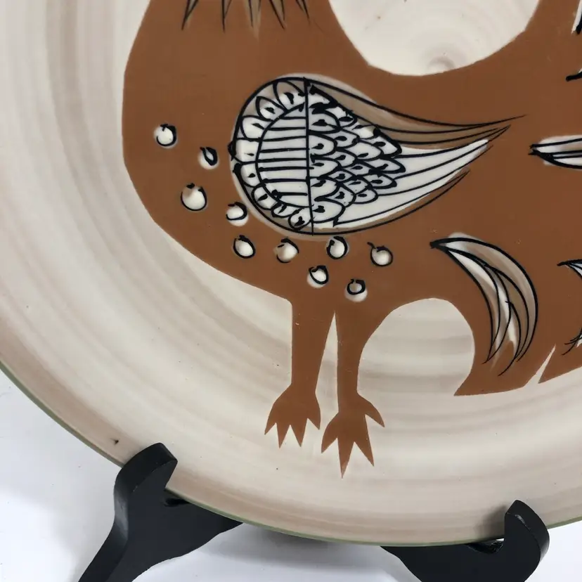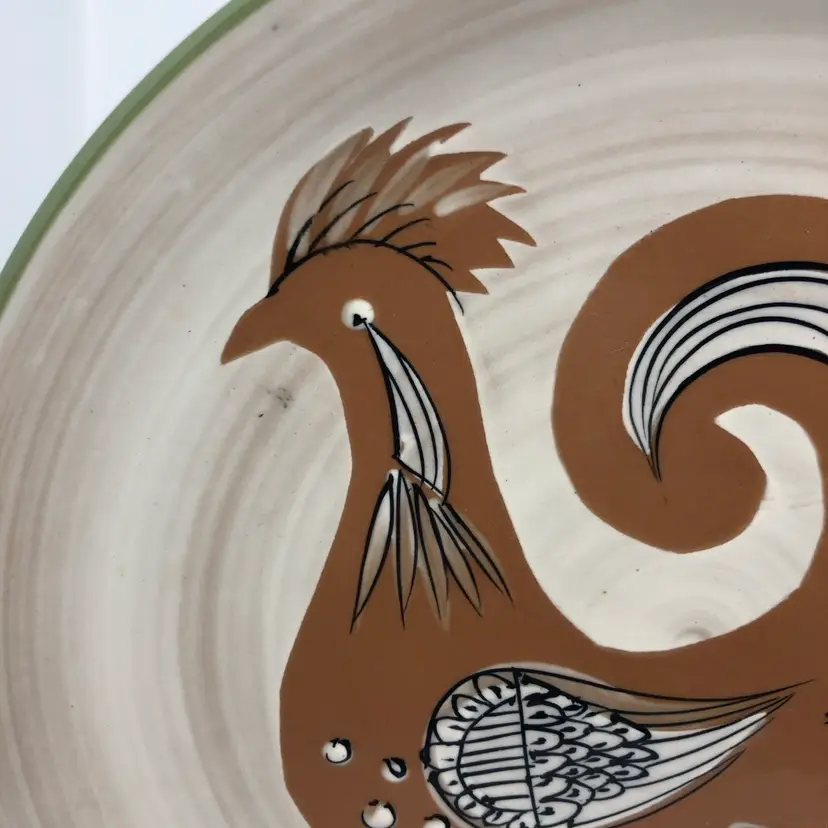 Heartrock Stone Ware Chanticleer Brown Rooster Bird serveware plate
