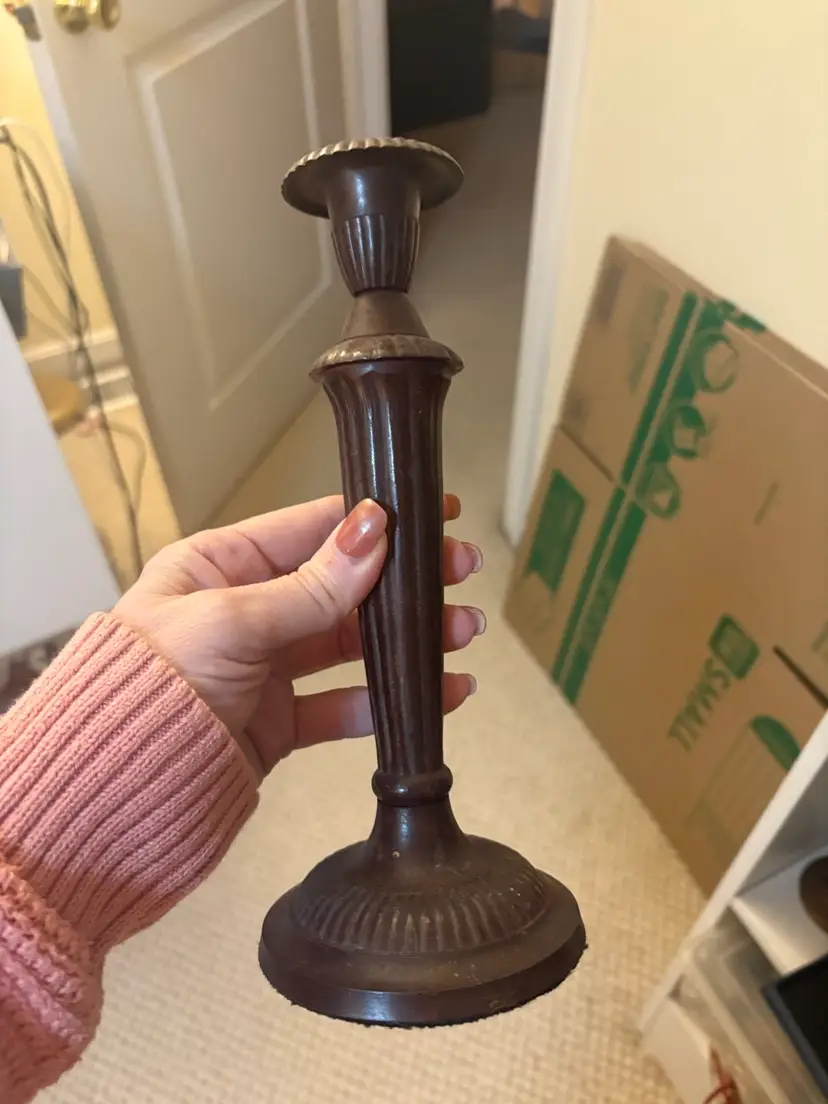Heavy Brown Metal Candle Holder