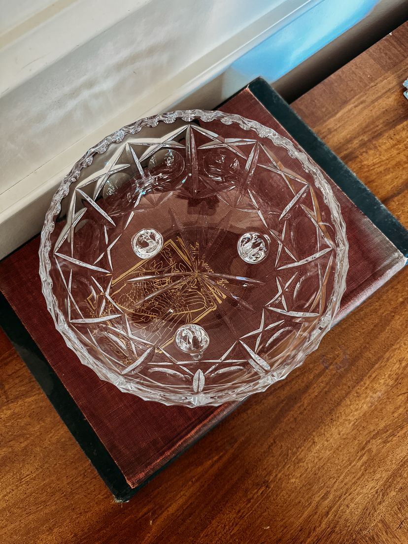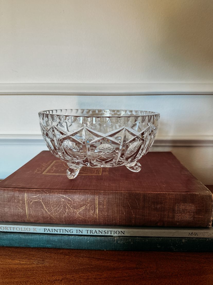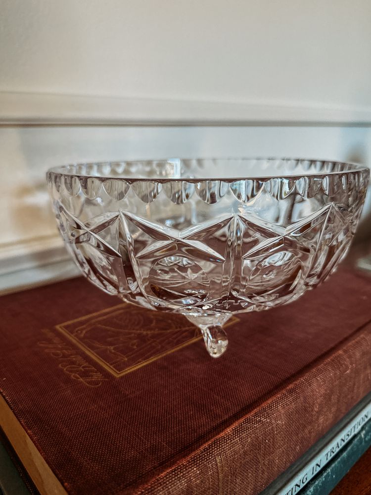 This exquisite Vintage Lead Crystal 3-Footed Bowl is a perfect example of fine craftsmanship and timeless elegance. Hand cut and etched, this clear crystal bowl features intricate detailing that showcases the skill and artistry involved in its creation. The three-footed design adds a touch of sophistication and stability, making it an ideal piece for both decorative and functional use. Perfect for collectors of vintage crystal and those who appreciate beautifully crafted glassware, this bowl is a stunning addition to any collection. Whether used to serve treats or as a centerpiece, it brings a sense of luxury and refinement to any setting. 8.25"x4"
