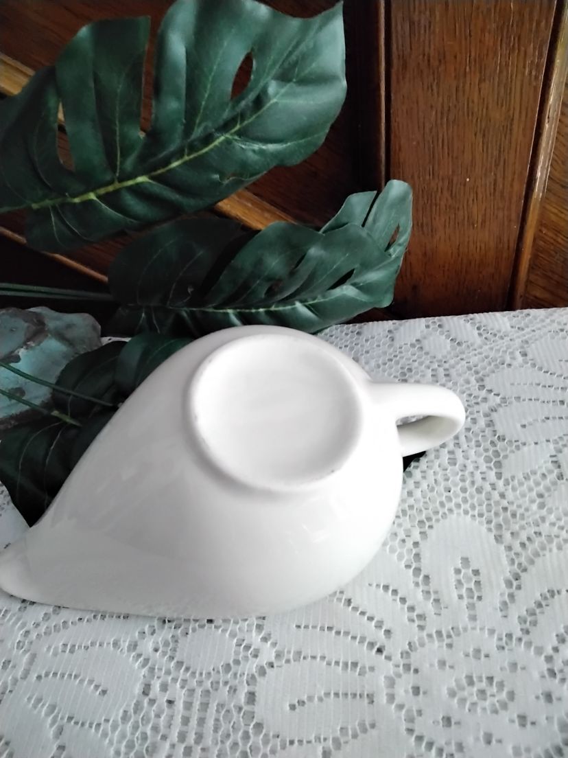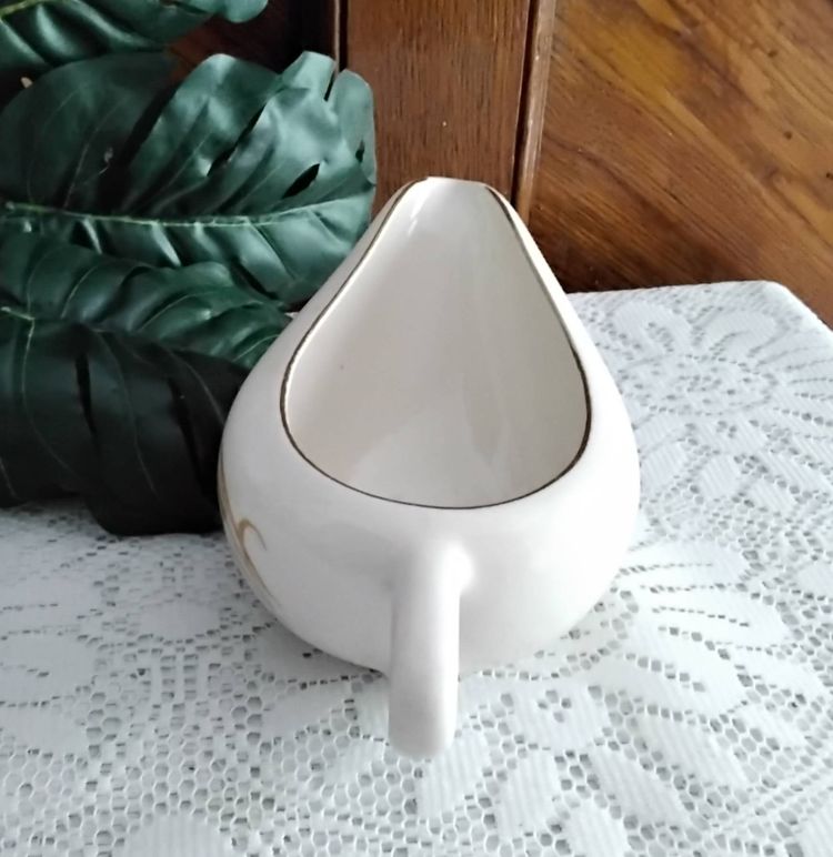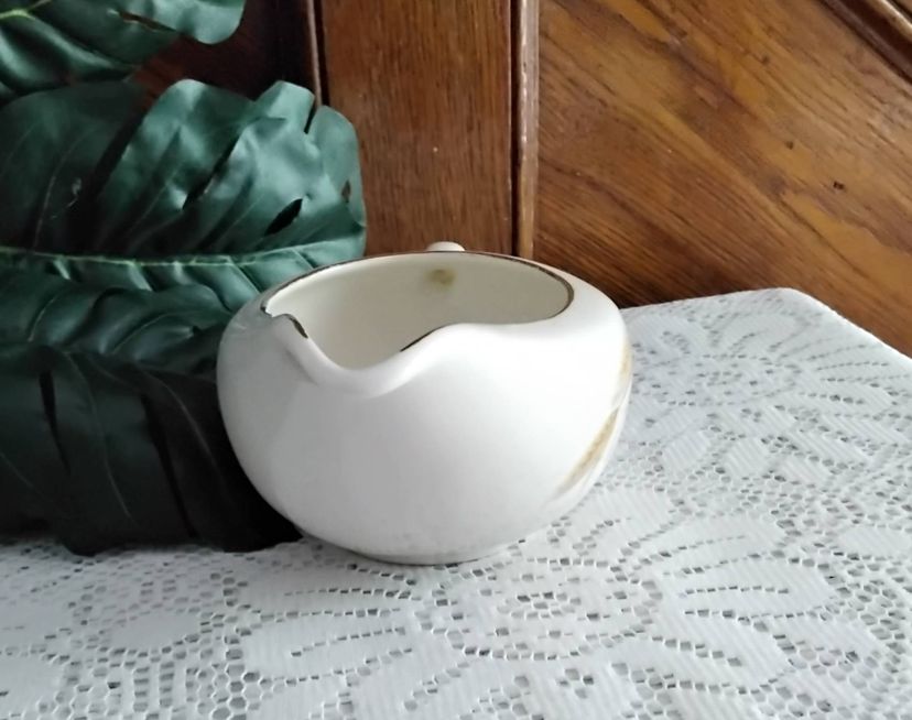 Vintage Homer Laughlin China Golden Wheat Pattern Creamer/Gravy Boat Server Dinner ware. Wheat and cream color with gold trim on top. Holds around 10 ounces and is 3.3 inches tall and from end of spout to end of handle is 7.3 inches. Has some fading on gold trim. Over all in good condition. Photos are part of the description.
