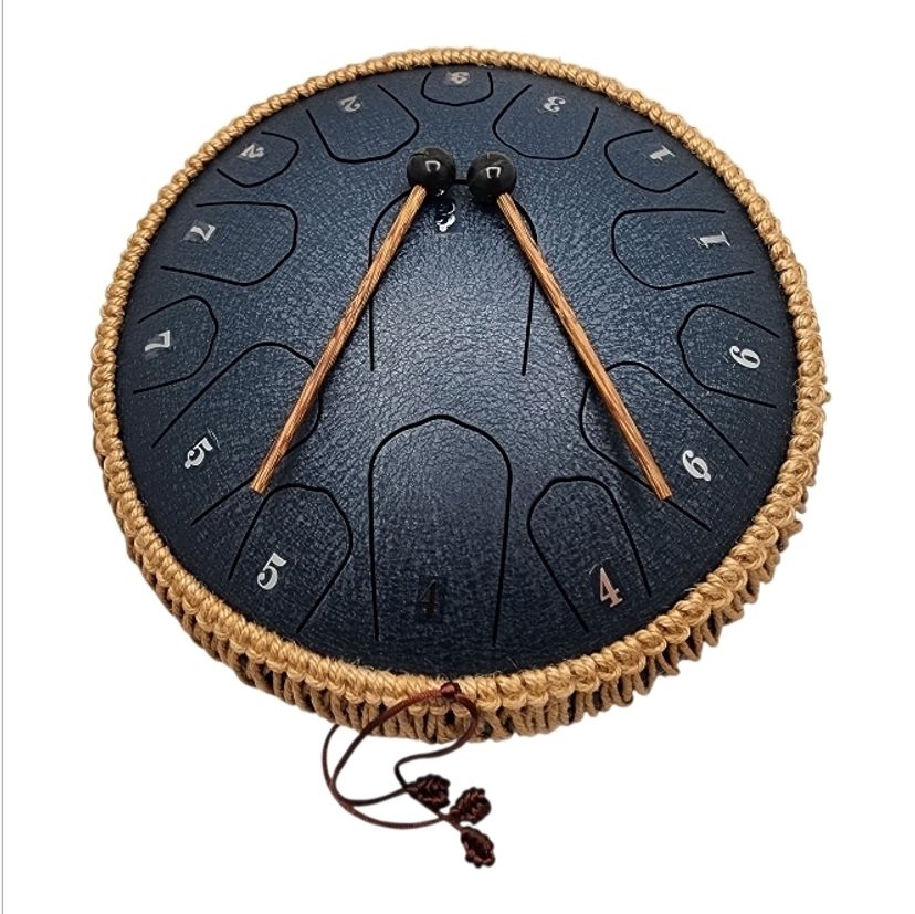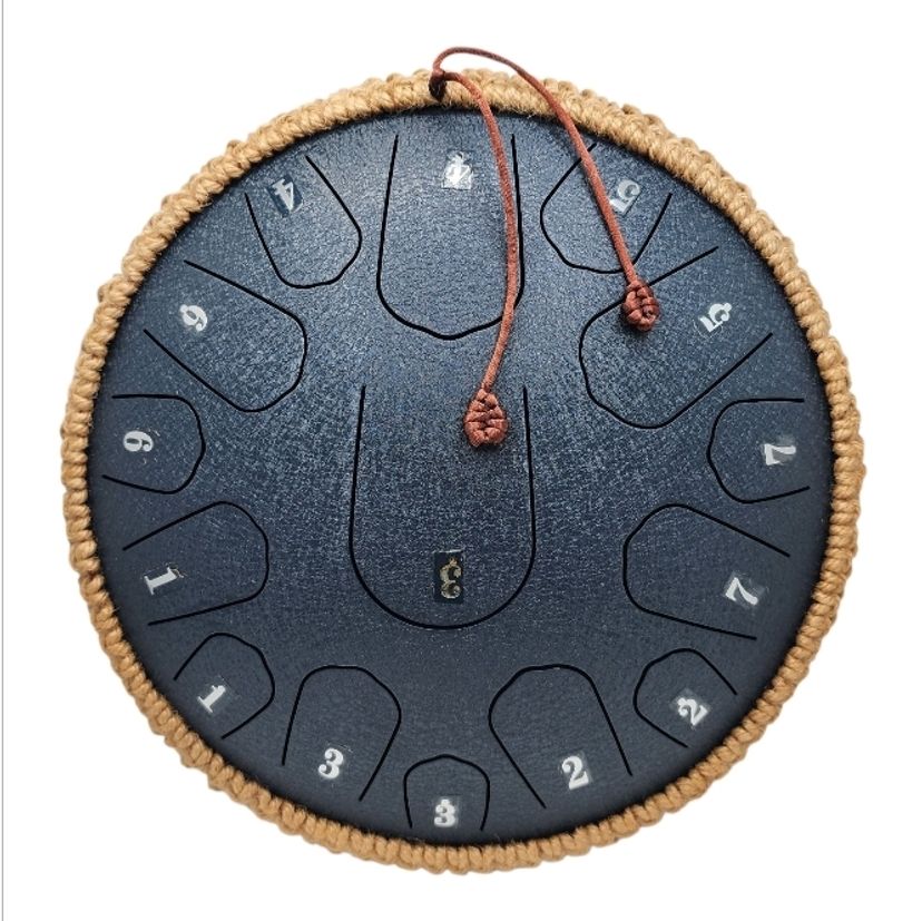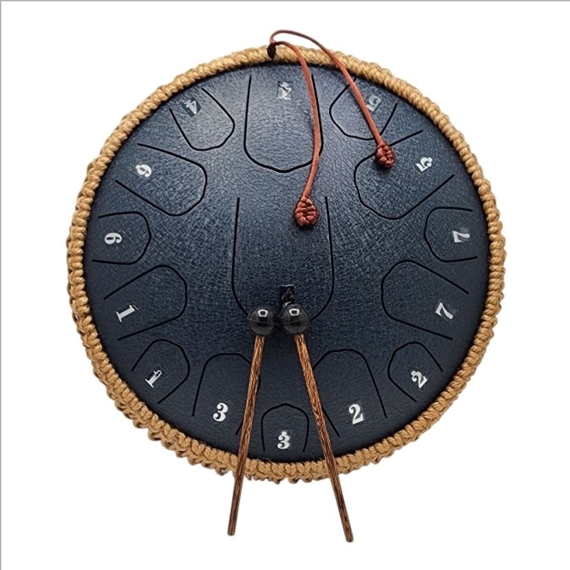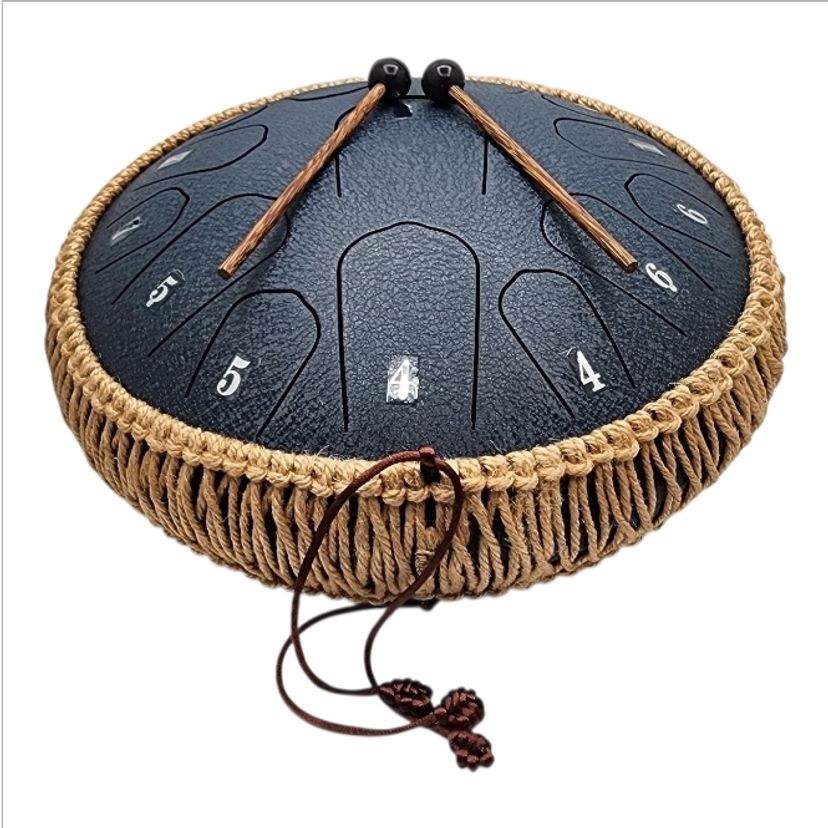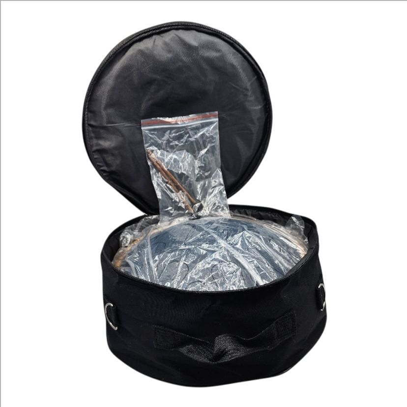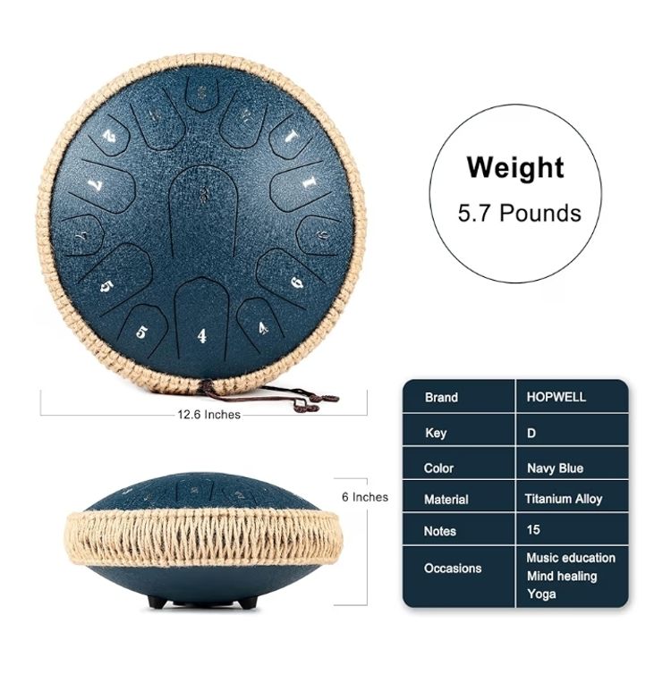 THE HOPWELL 13 INCH HAND TONGUE DRUM IN THIS LISTING IS IN EXCELLENT, LIKE NEW CONDITION. IT DOES NOT COME IN MANUFACTURERS PACKAGING, OR INCLUDE ANY PAPERWORK. IT DOES COME WITH A 2 PIECE SET OF MALLETS, AND A BLACK NYLON ZIPPER STORAGE BAG. THE DRUM IS IN PERFECT CONDITION. PLEASE LOOK AT ALL PHOTOS, THEY ARE OF THE ACTUAL DRUM YOU WILL RECEIVE.