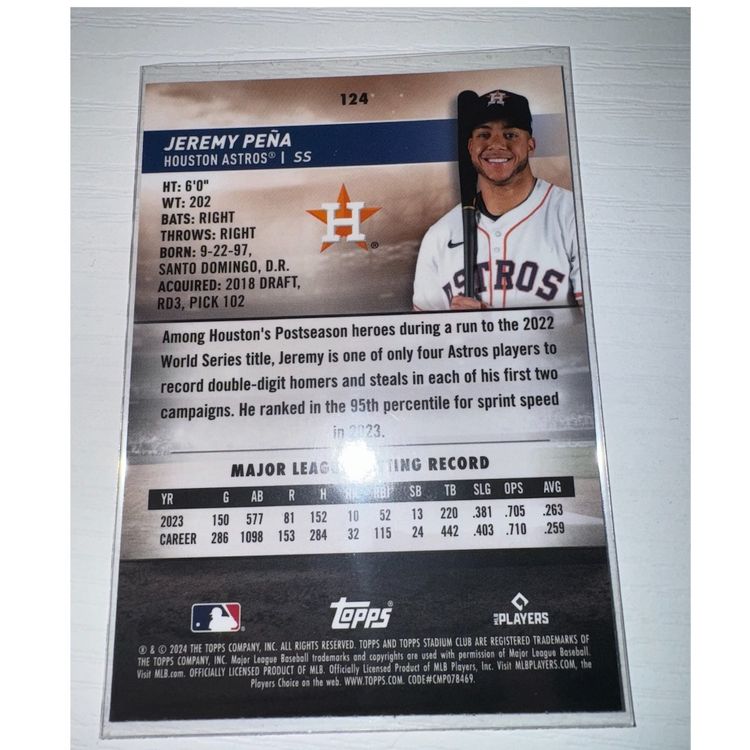 This 2 Card Lot Includes: Jeremy Pena 2024 Stadium Club Purple 14/75 Justin Verlander 2024 Stadium Club Chrome Refractor