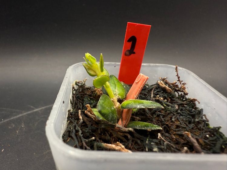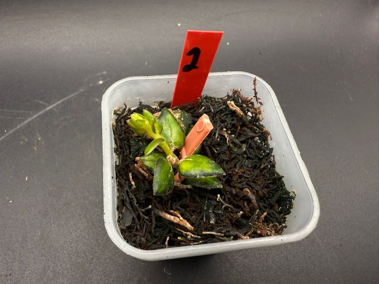 (#2) H. Chinghungensis Variegated. Rooted start with new growth. Passes tug test. Was slow to root for me but has been a super fast grower once it takes off! Fully acclimated to indoor home temps/humidity/grow light. (72°, 40% humidity, Barrina T5.) Stable variegation.