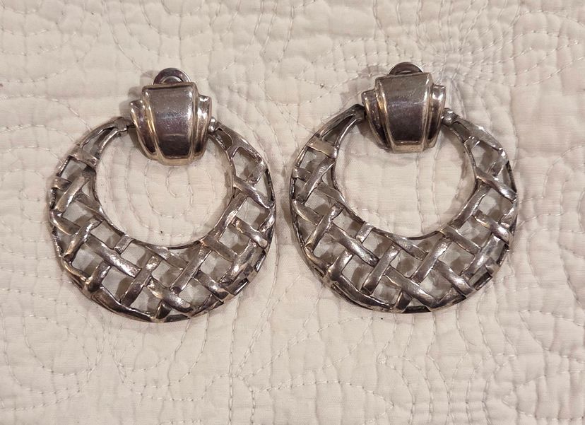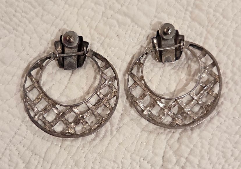These hoops have a 2-1/4" hanging length. Marked Mexico 950