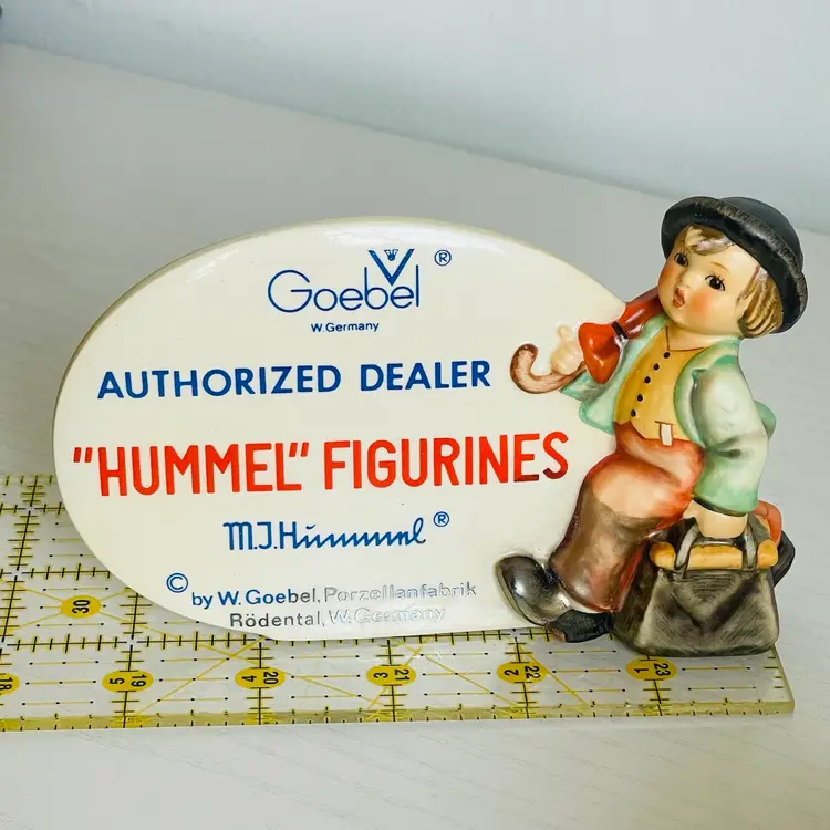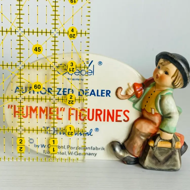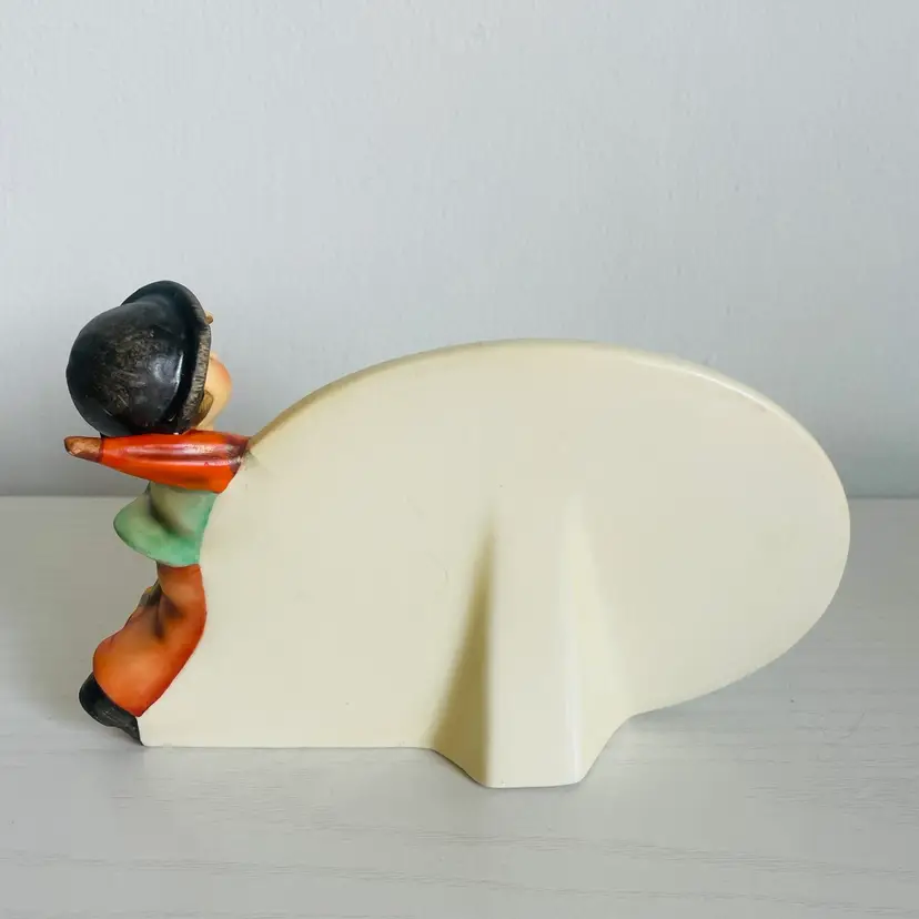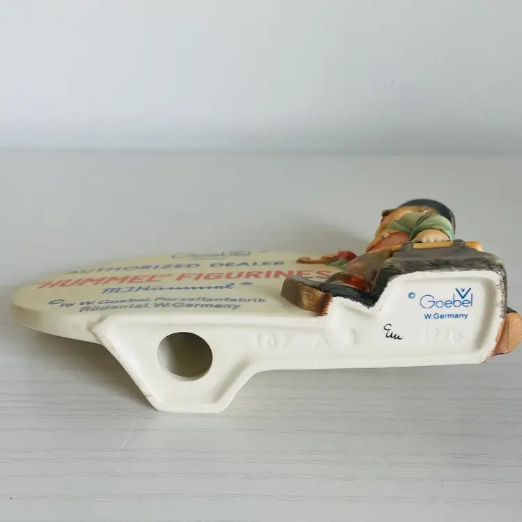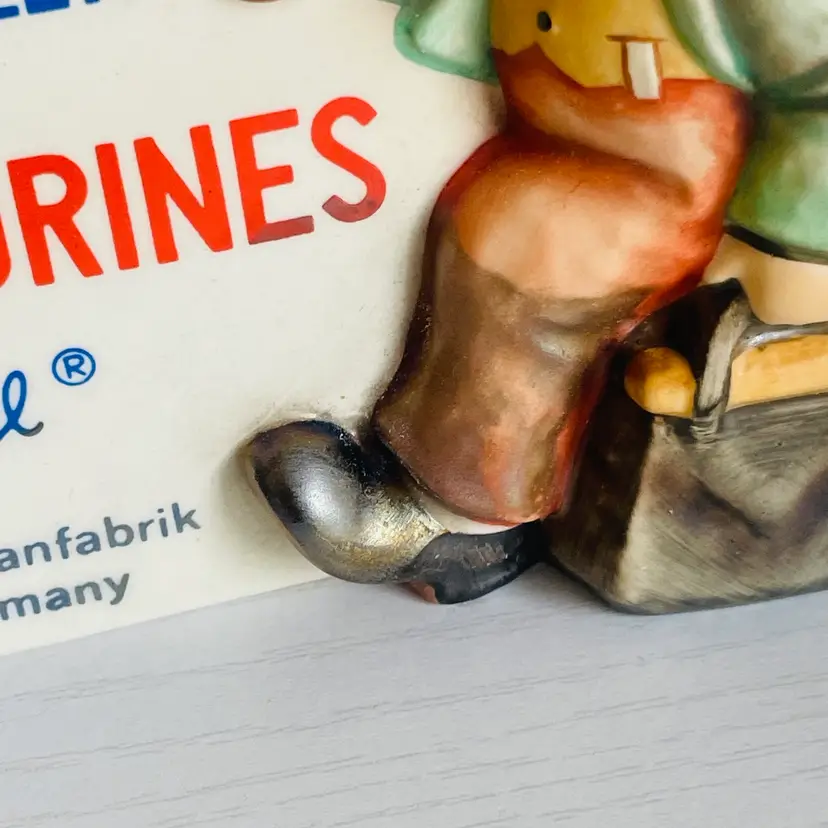 Has a little bit of oxidation to the glaze (causes it to look metallic). Would look super cute in a booth if you have Hummels that you are trying to sell!