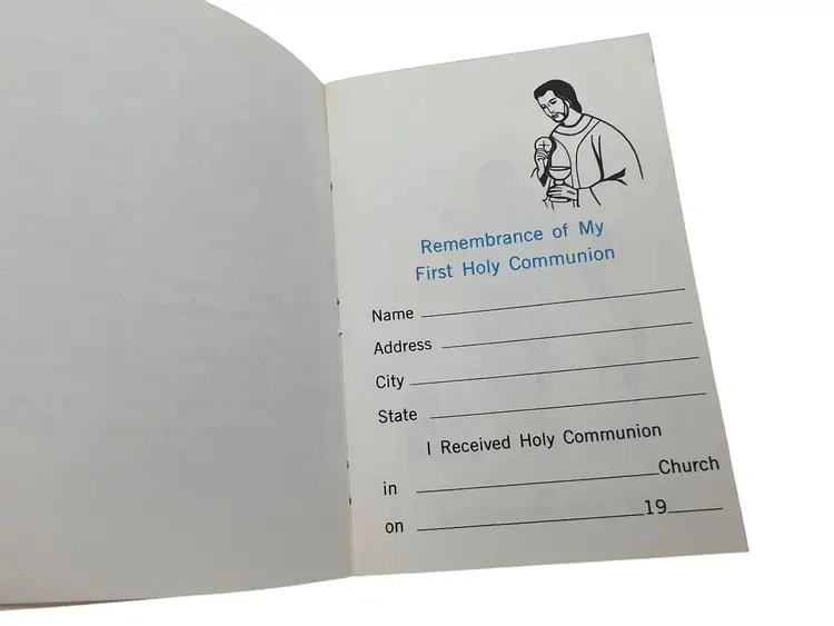 “Remembrance of My First Holy Communion” page is present and unused. No rips or tears to pages noted. See pictures for further details on condition.