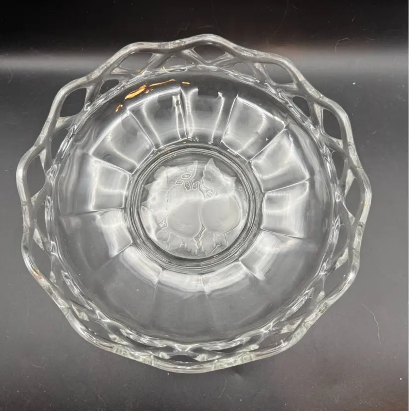 Imperial Glass Intaglio Fruit Open Lace Edge Bowl - 8 In