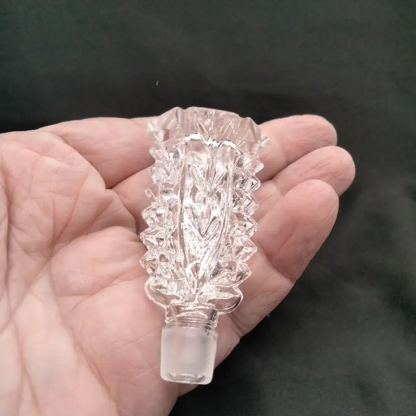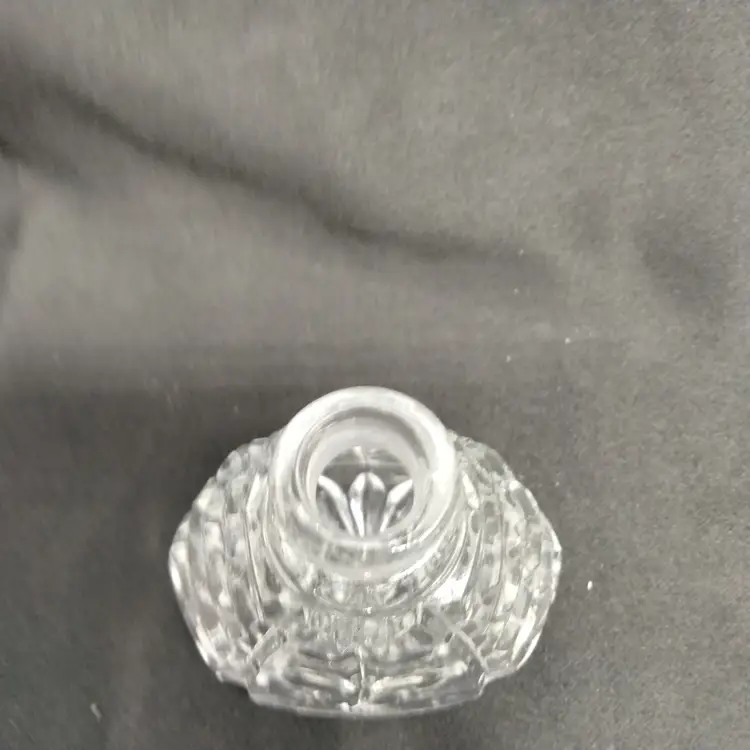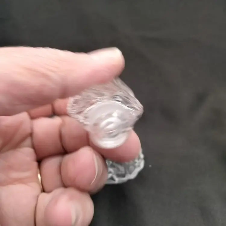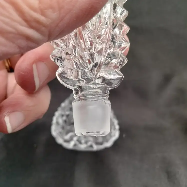 IRICE Japan Pressed Clear Floral Center Pattern and Diamond Point on Sides Glass Perfume Bottle with Stopper Vintage