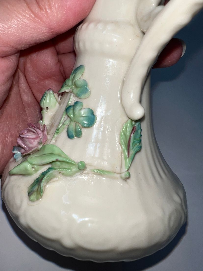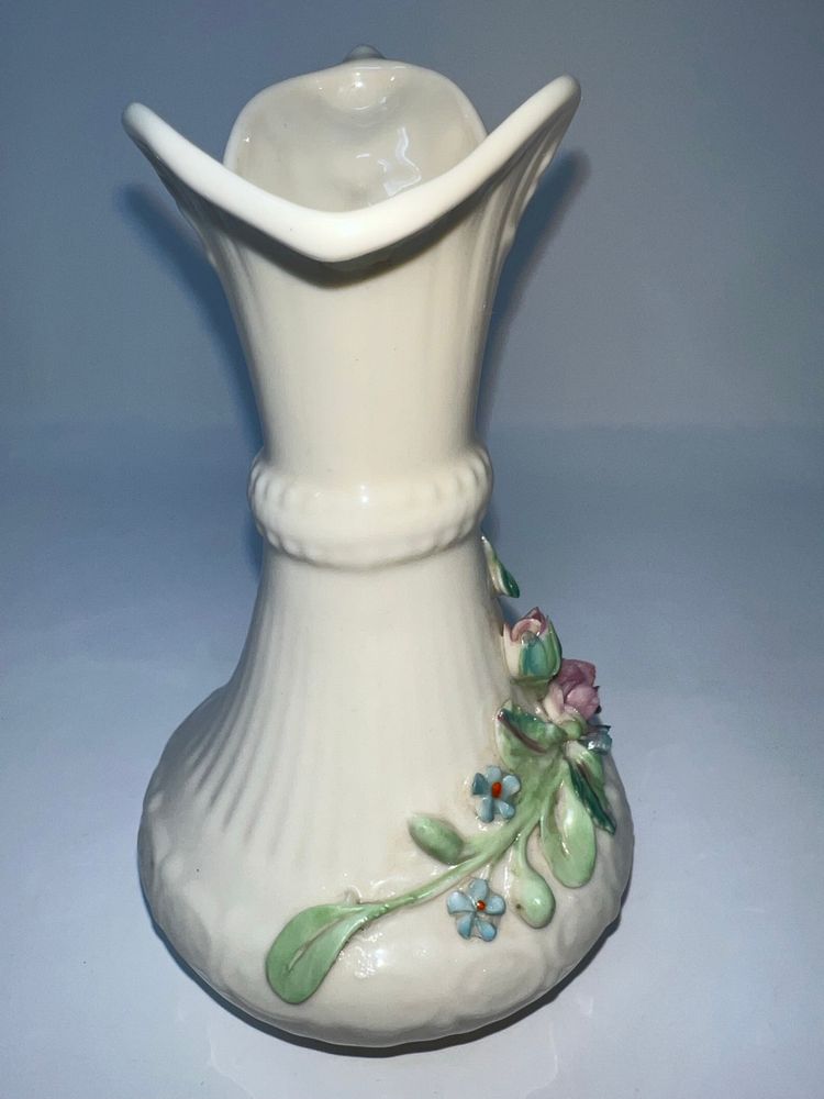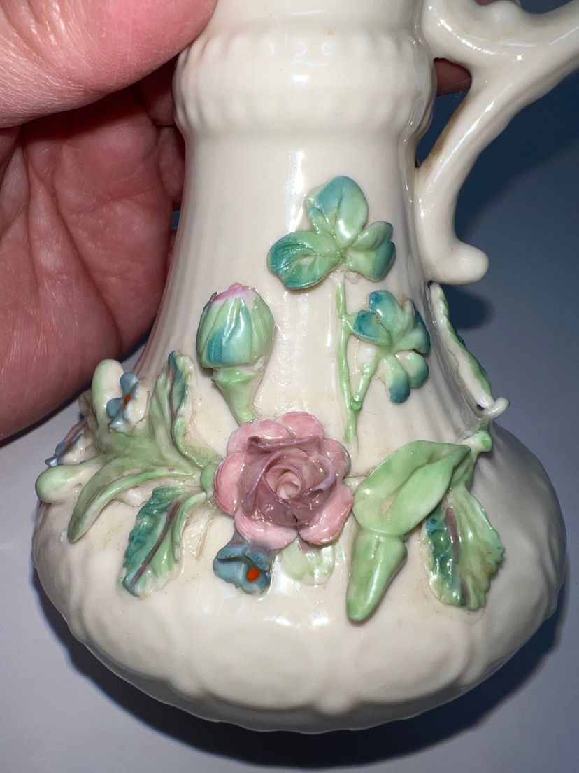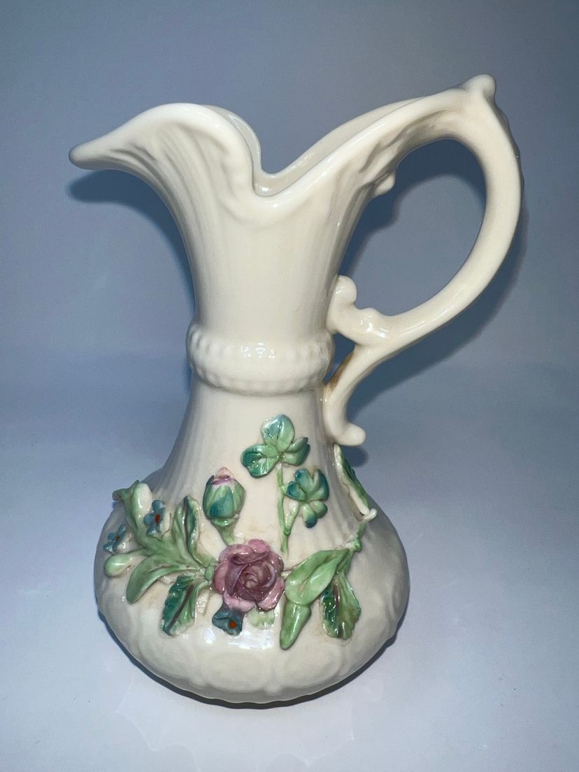 Irish Belleek with golden mark. Pitcher decorated with roses etc.