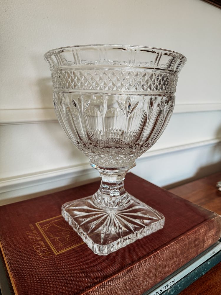 Absolutely stunning Godinger Shannon Lead Crystal Pedestal Compote Bowl in excellent condition. I used to fill it with hydrangeas for a stunning centerpiece! Fill with ornaments for Christmas or pinecones for Fall!