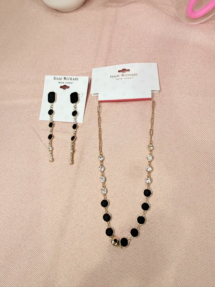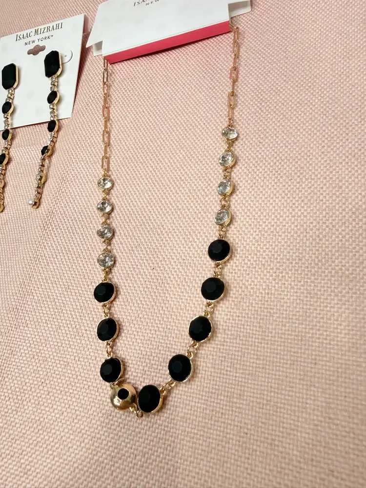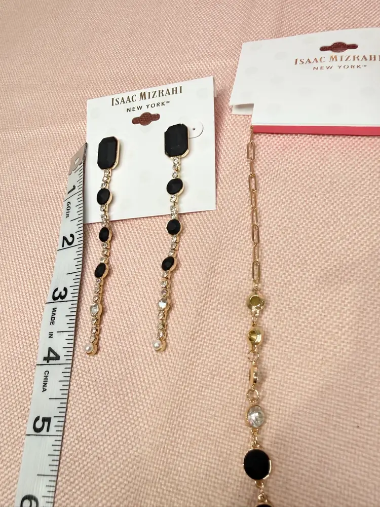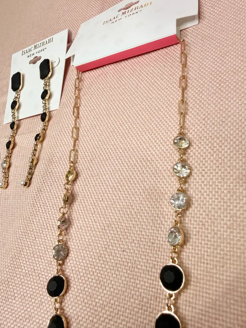 Isaac Mizrahi Jewelry Set Necklace Earrings Black Drop Gold Elegant Gift