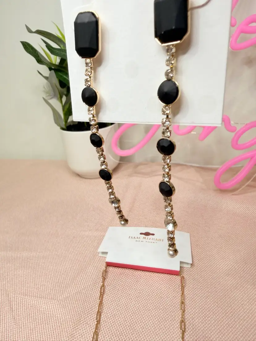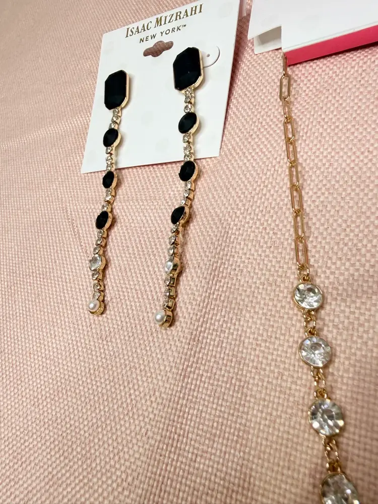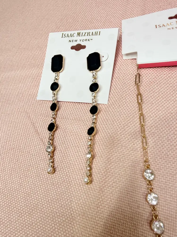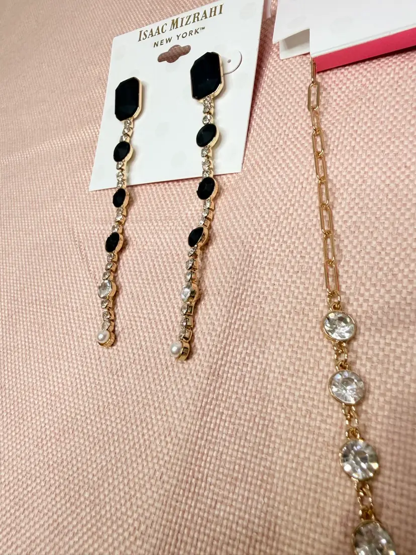 Isaac Mizrahi Jewelry Set Necklace Earrings Black Drop Gold Elegant Gift