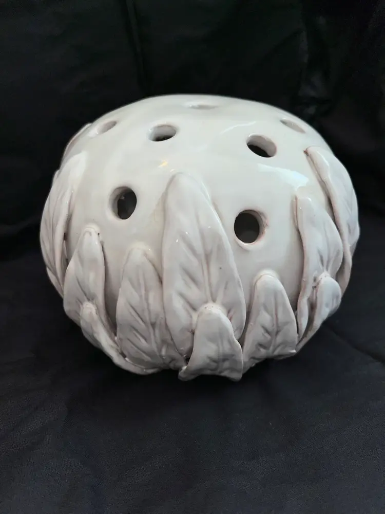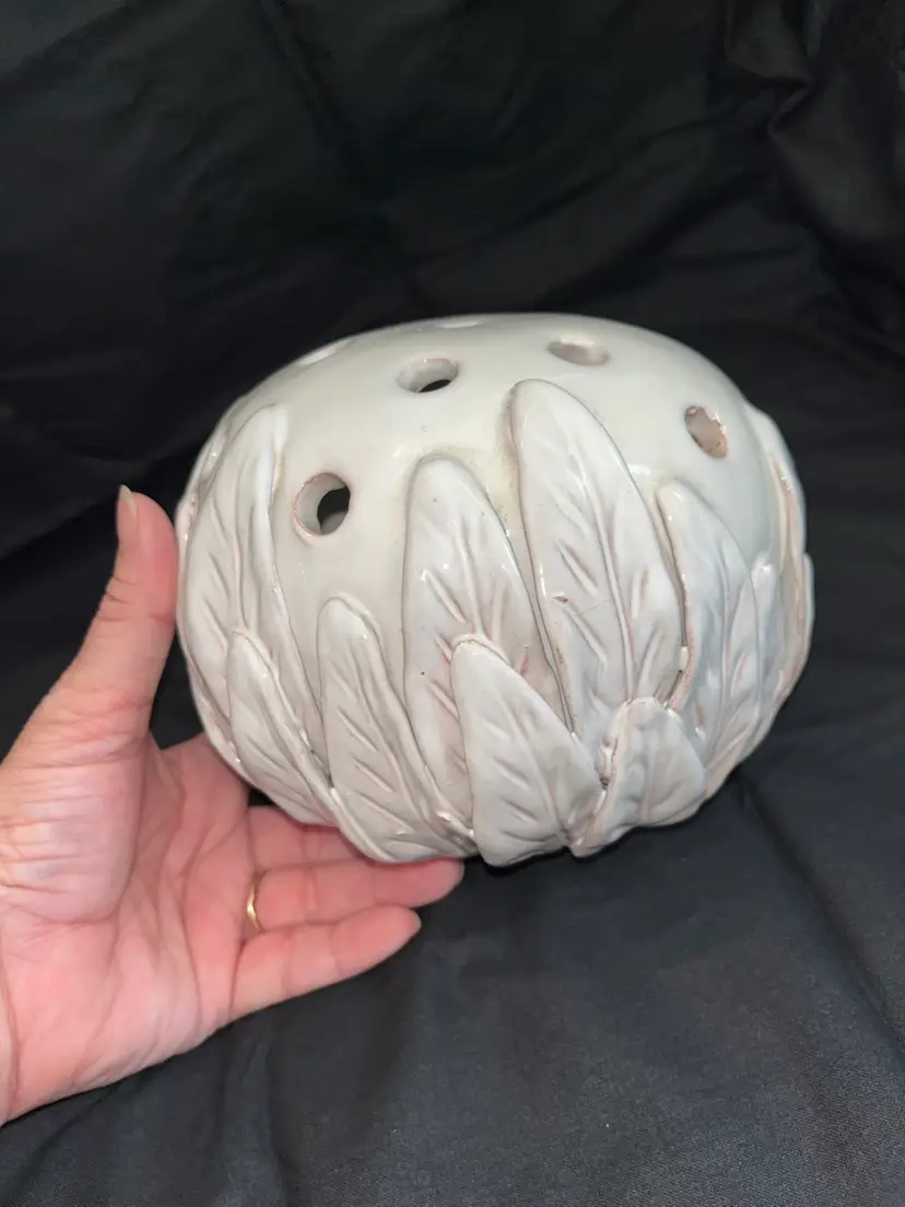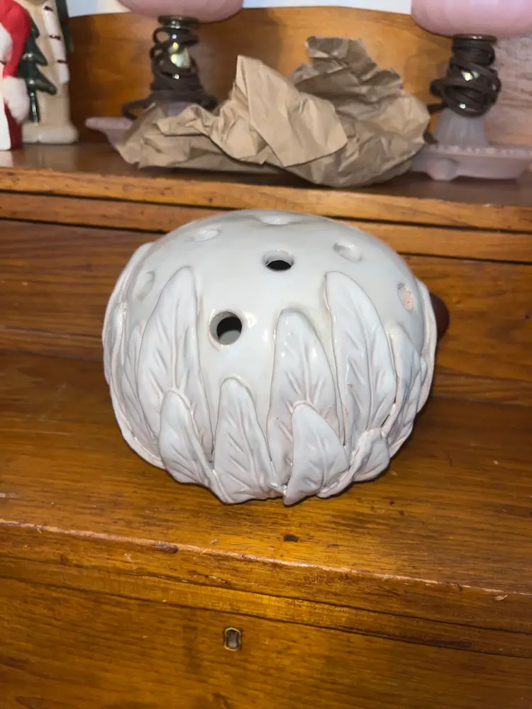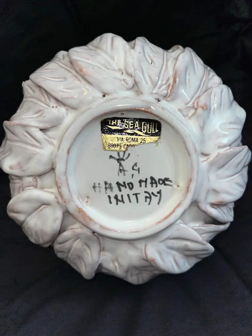 Italian flower frog pottery. Sticker says “the sea gull VIA Roma 25 80073 capri size is 7” wide by 5” tall