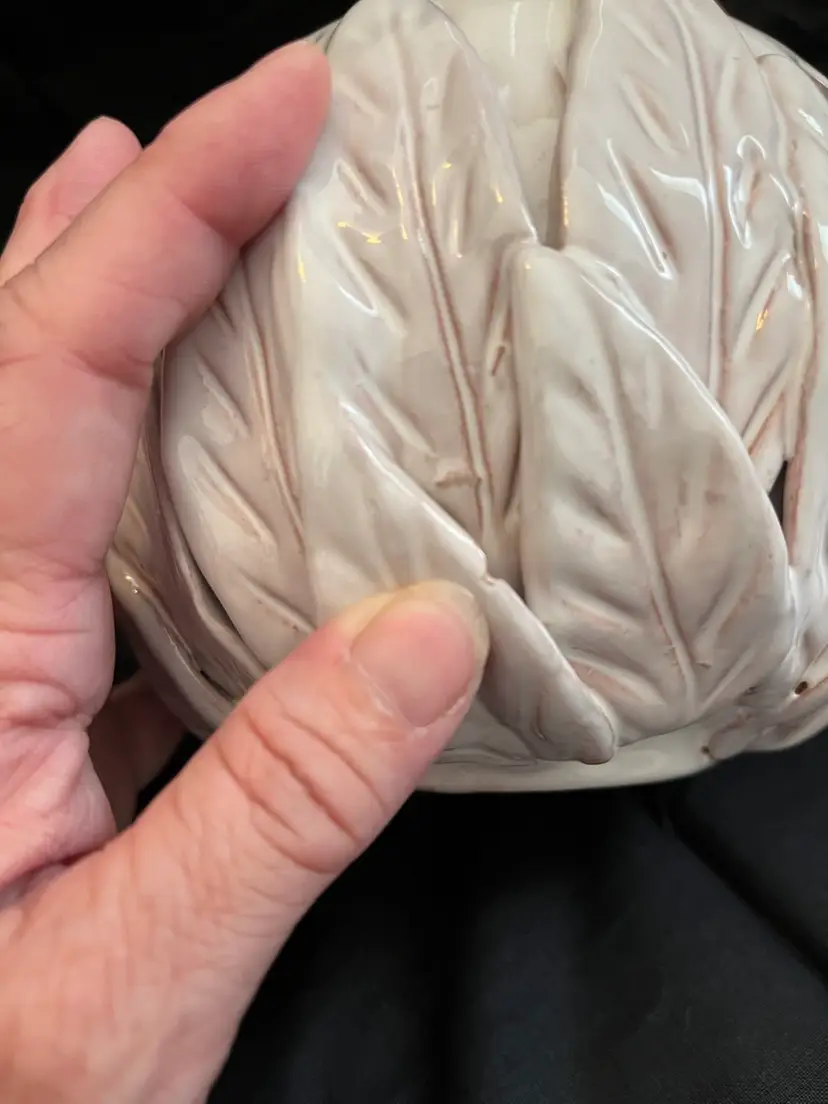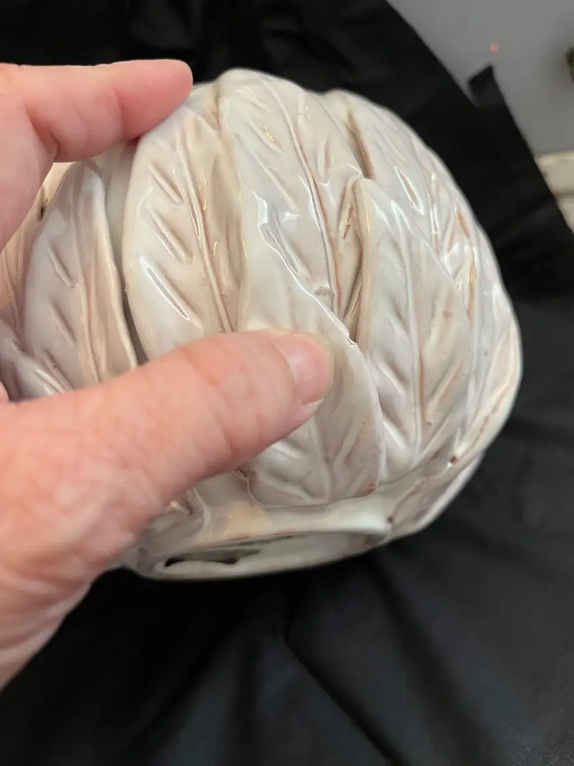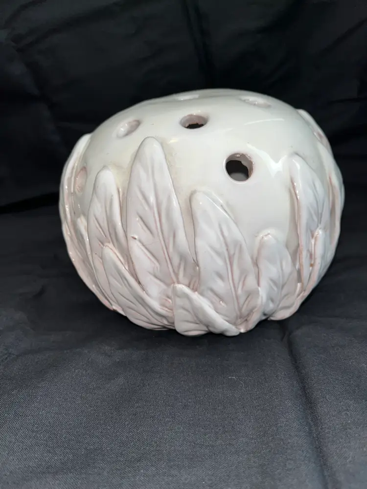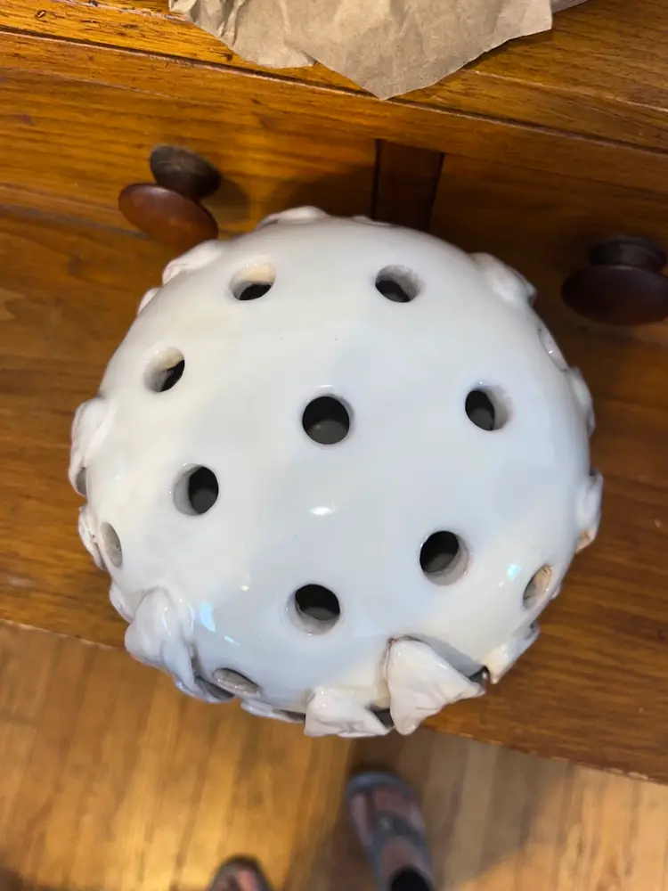 Italian flower frog pottery. Sticker says “the sea gull VIA Roma 25 80073 capri size is 7” wide by 5” tall