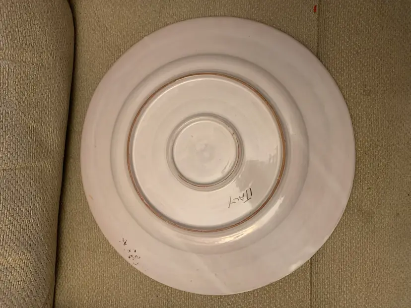 No chips or cracks. 2 klin mark on edge. 13 5/8 x 1 1/4 inches