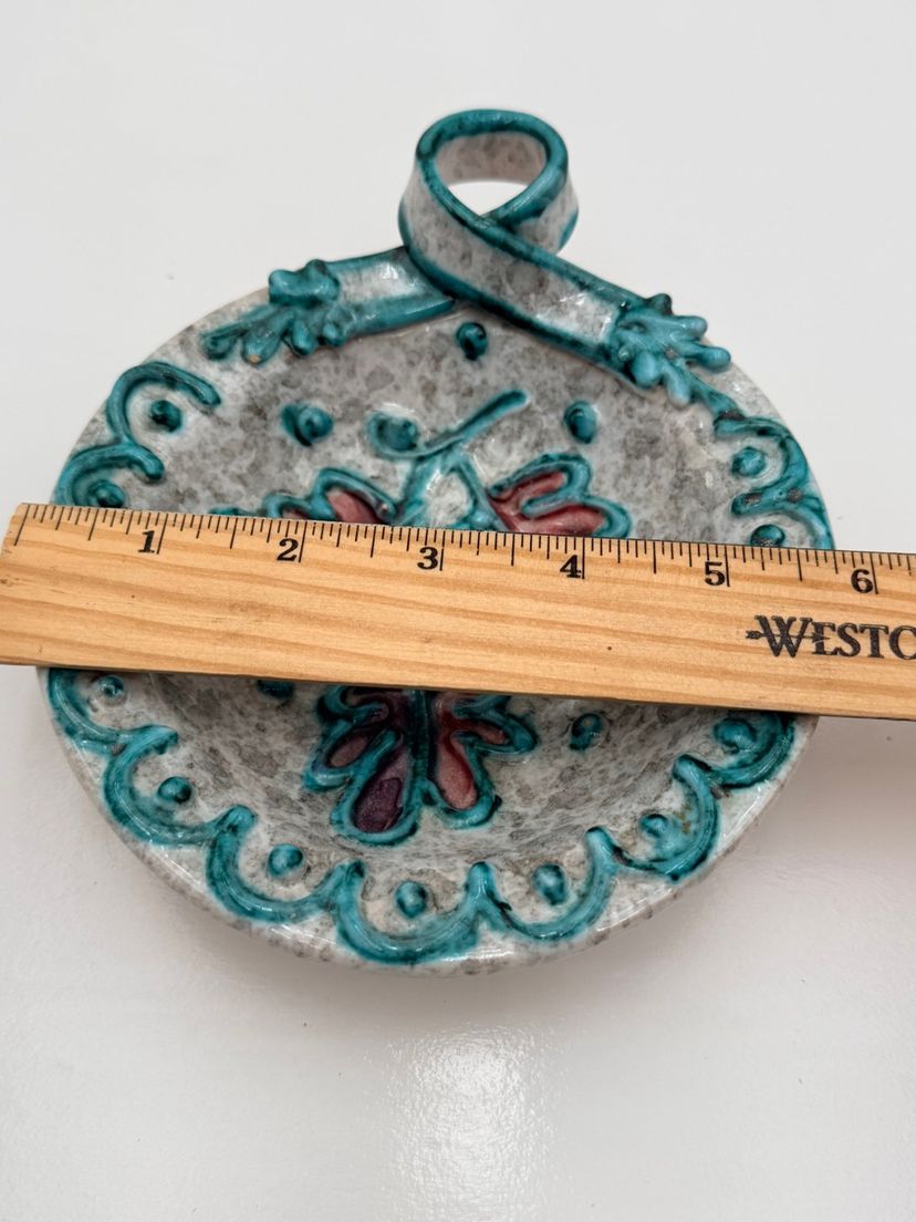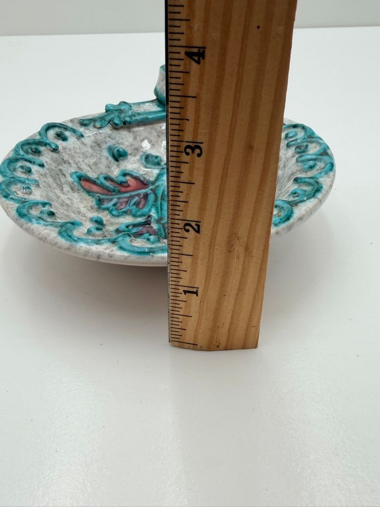 As shown 1.5 inches deep and 5.75 inches wide No chips or cracks