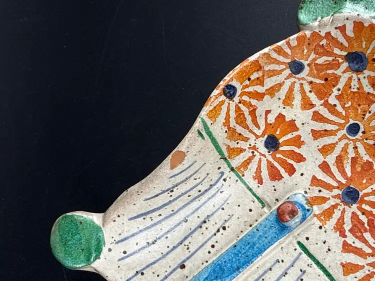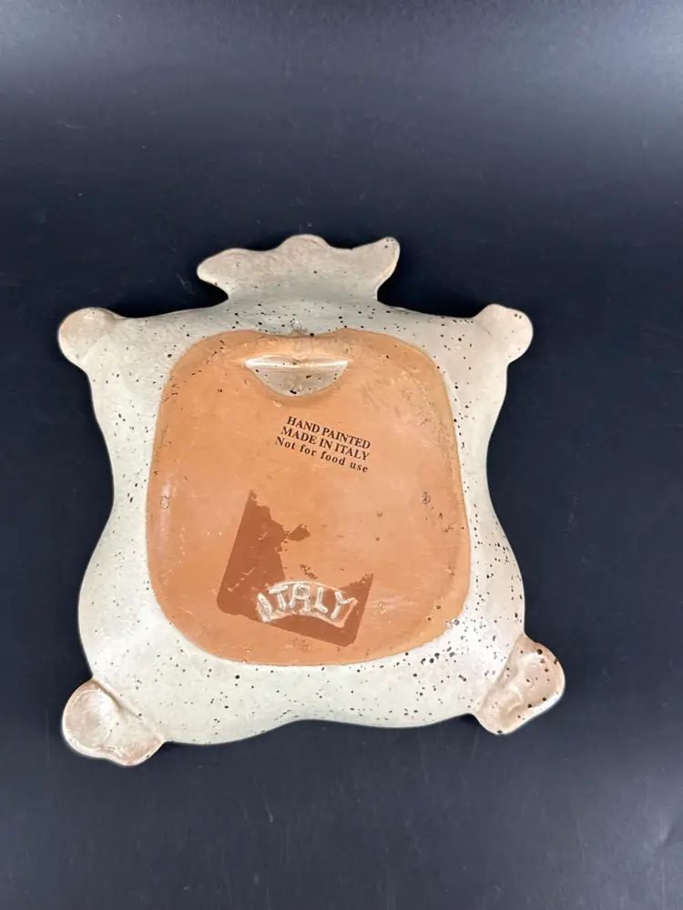 It measures 6"x5.5" and is in good condition. There are no cracks, breaks, or repairs. There are 2 chips on either side of the dish. (See photos).