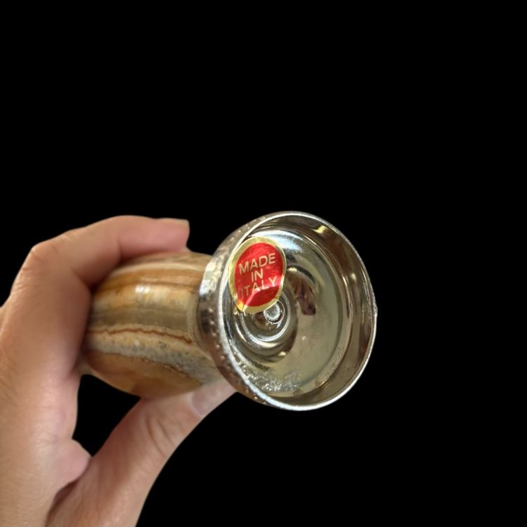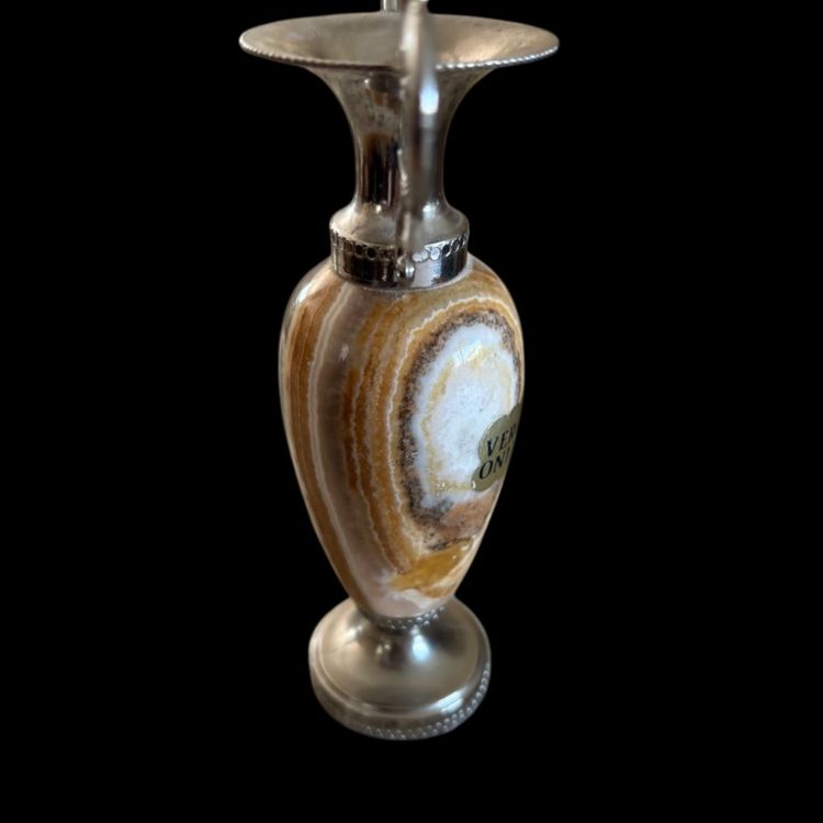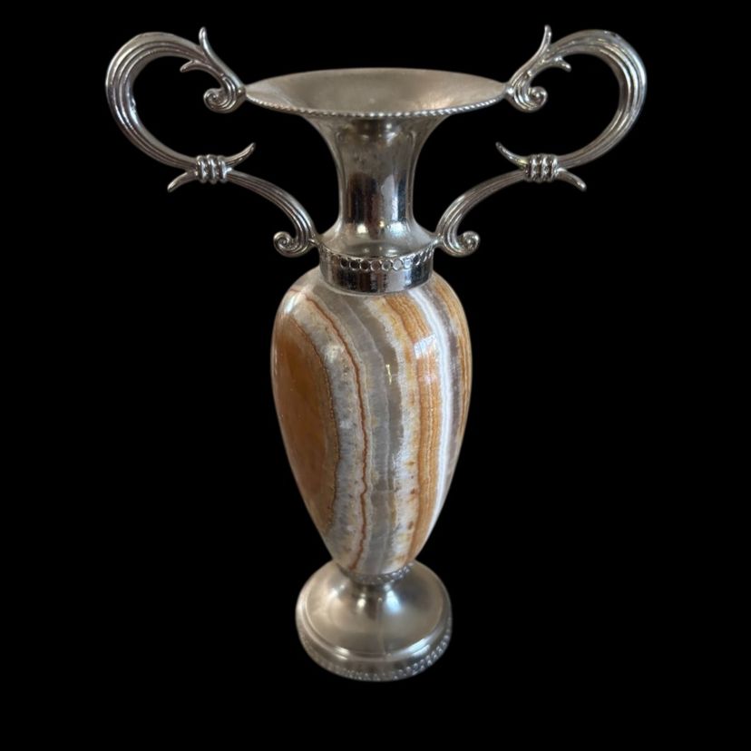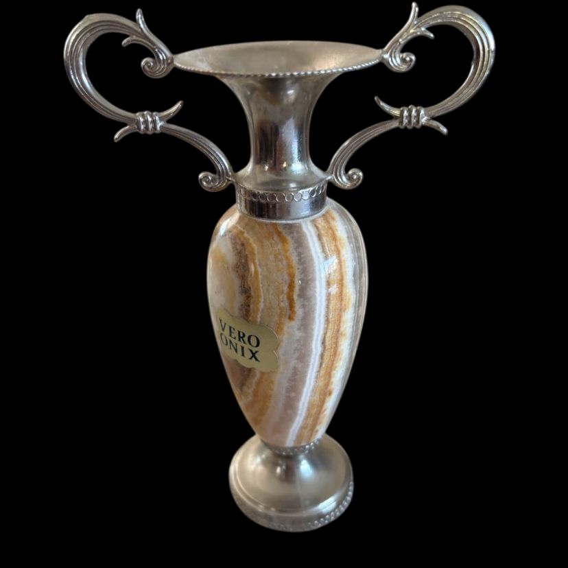 Small metal and stone Italian vase. In good condition. 3.5x5.25”