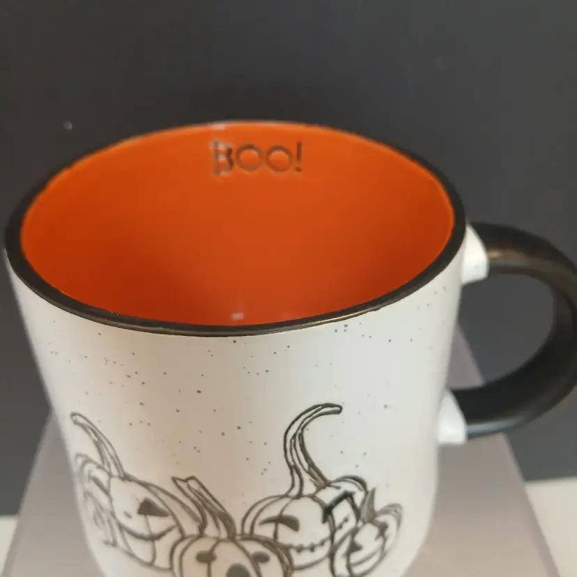 Black and white on the outside with a GREAT orange inside and the word "Boo" - no markings, no chips cracks or breaks.