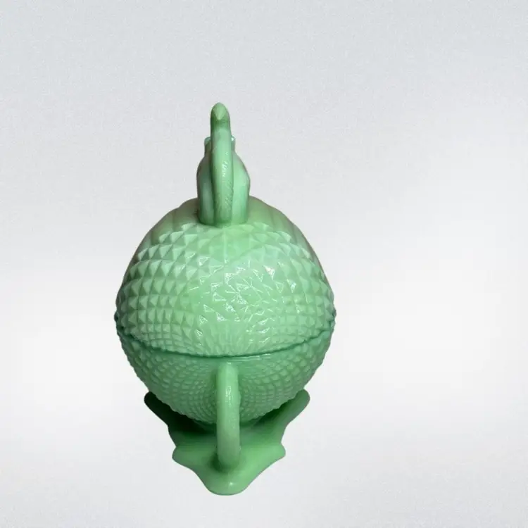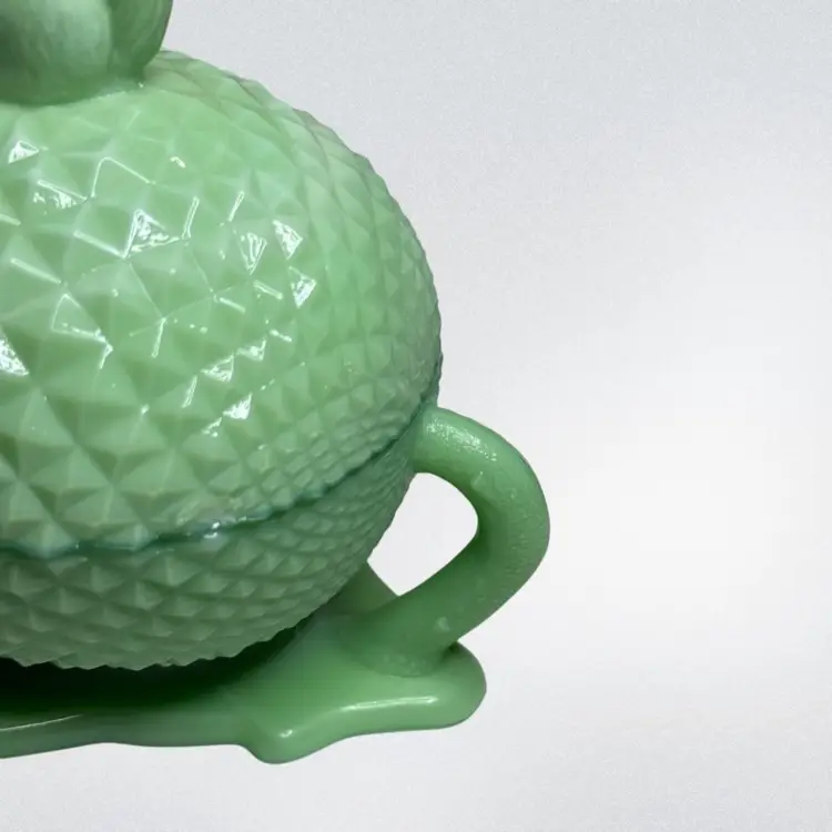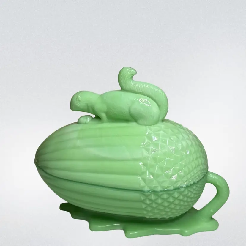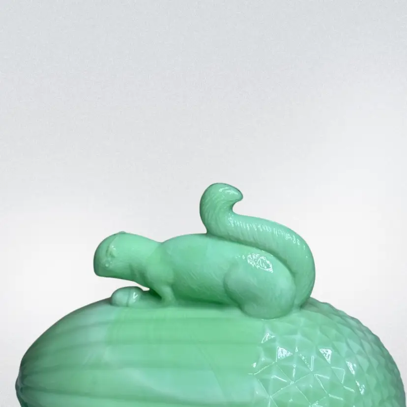Jadeite Squirrel & Acorn Martha Stewart Candy Dish and Lid - Vintage Martha By Mail Jadeite Squirrel Acorn Covered Dish.