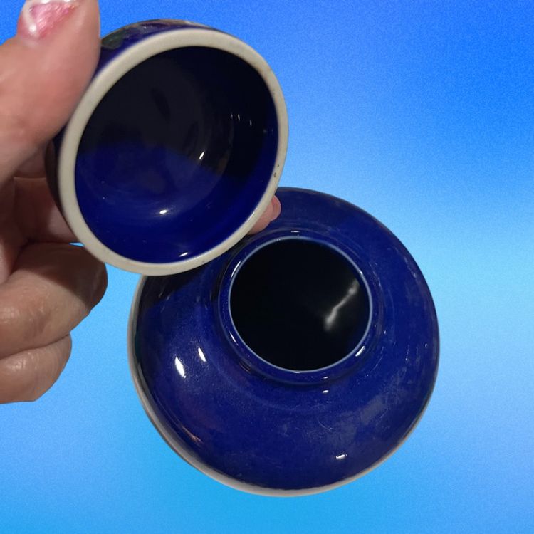 14. Japanese Kutani Ware Cobalt Ginger Jar 5”