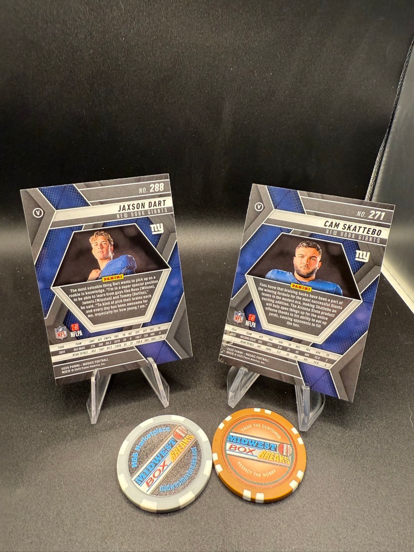 This is a 2-card rookie Variation lot if Jaxson Dart and Cam Skattebo. New York Giants.