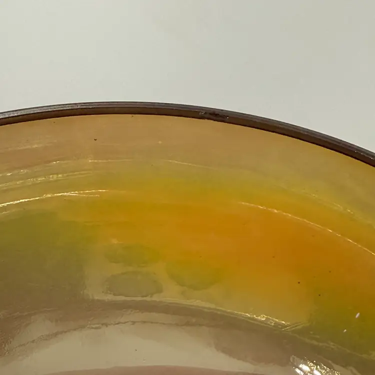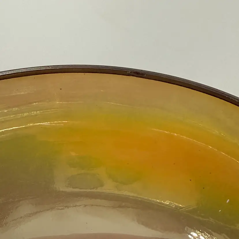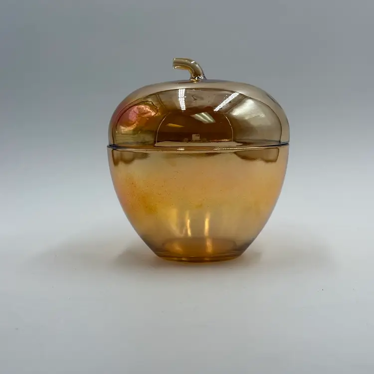 In good condition. Does not have any cracks. There are a few flea bites on the rim of the lid. Measures 5 3/4 inches tall and 5 1/4 inches wide.