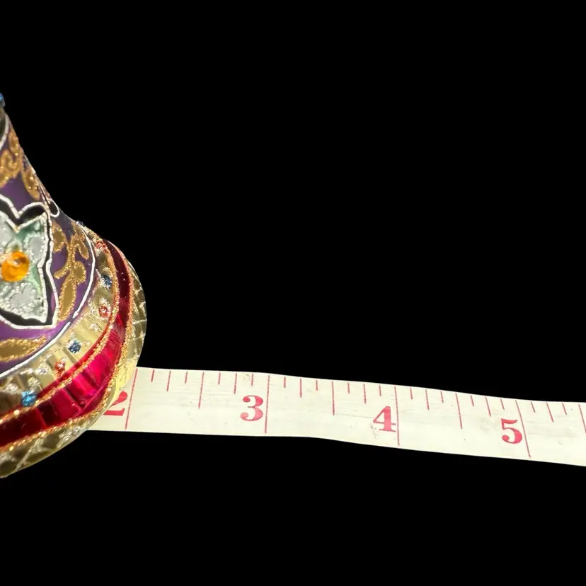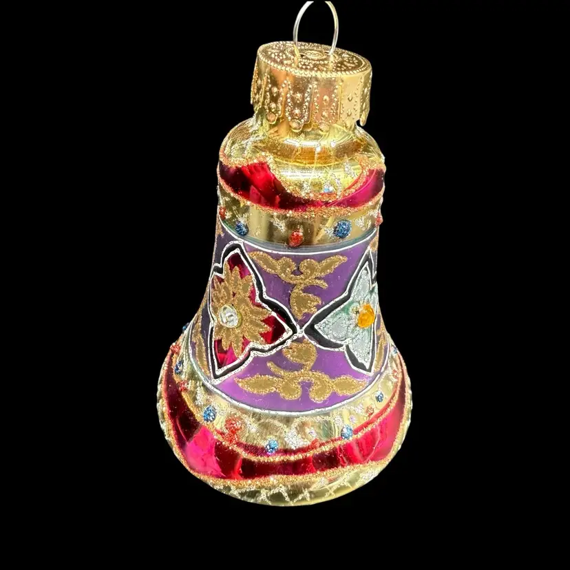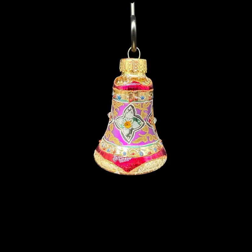 The Jeweled Bell Shaped Christmas Ornament by Unique Treasures is a bell shaped ornament made of glass. The multicolored ornament features a decorative design in the shape of a bell, perfect for celebrating the holiday season. Add a special touch to your decor with this unique and collectible ornament.