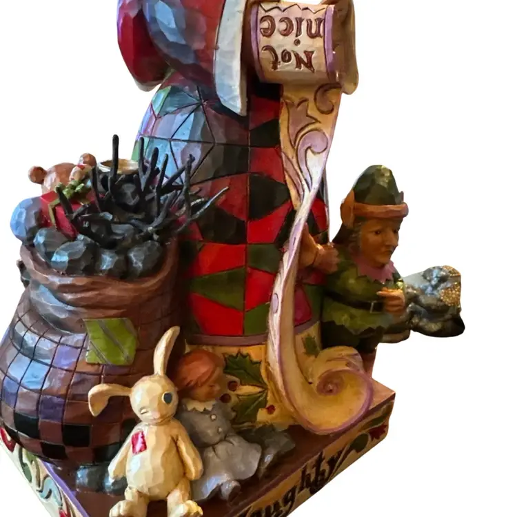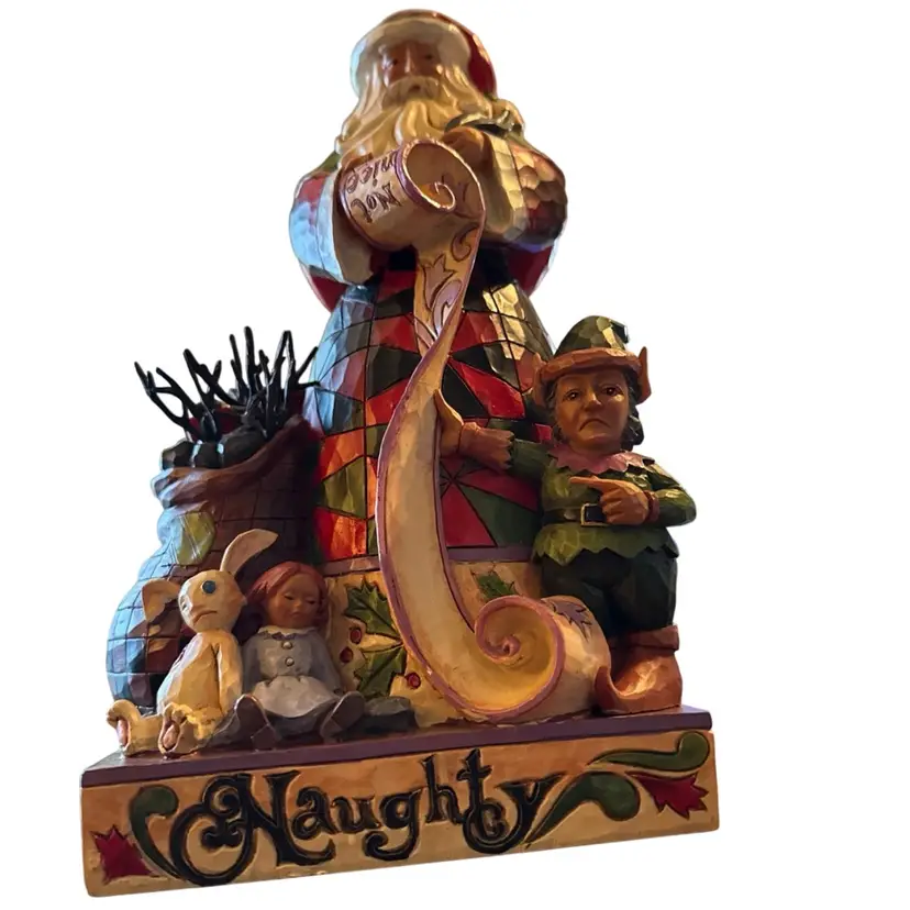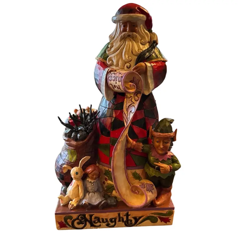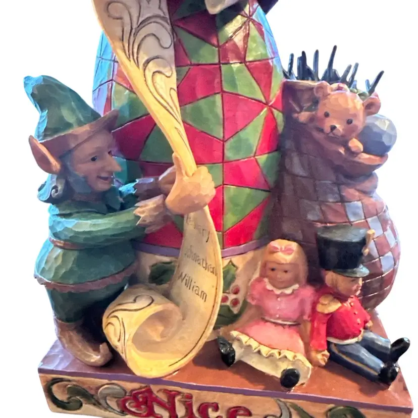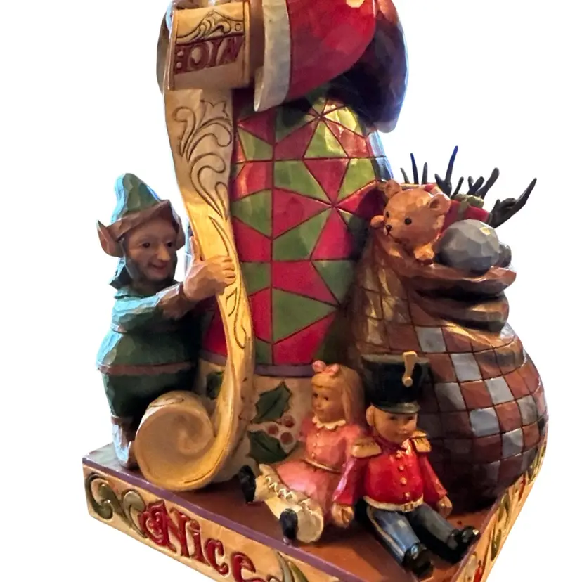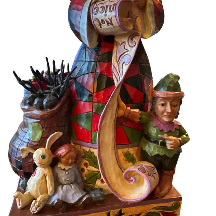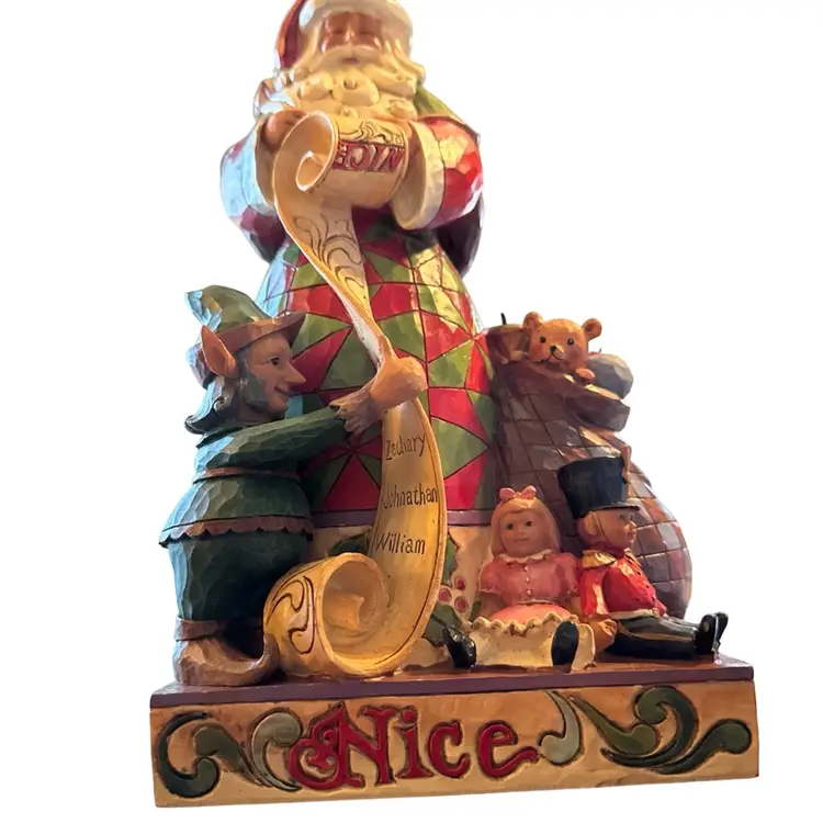 Design: The figurine features a two-sided design with Santa Claus holding a "naughty" and "nice" list.