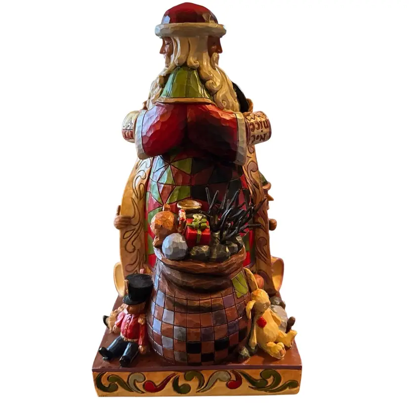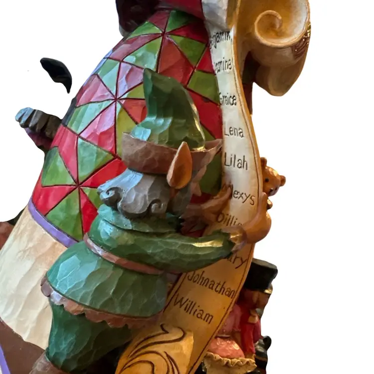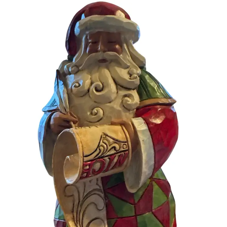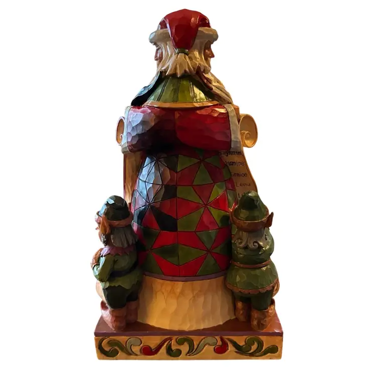This is a Jim Shore "Checking It Twice" figurine. It is a two-sided Santa Claus figurine from the Heartwood Creek collection.
