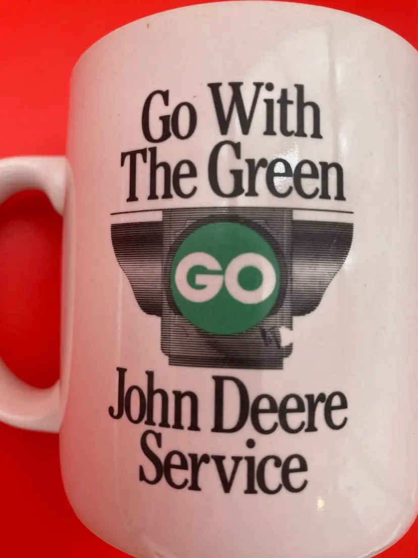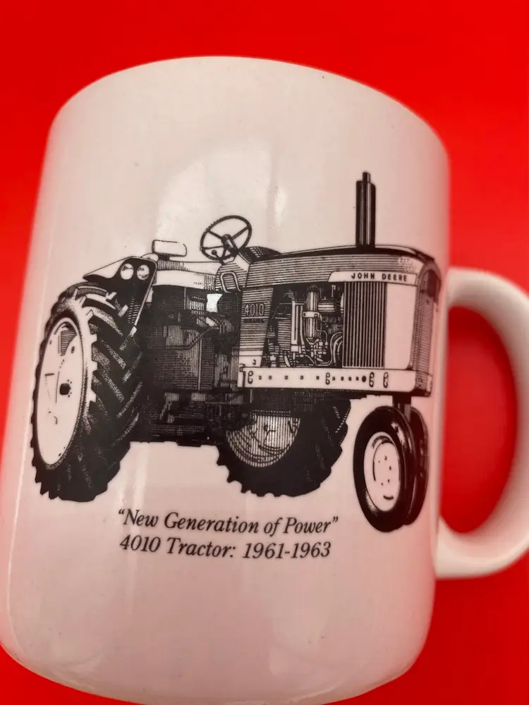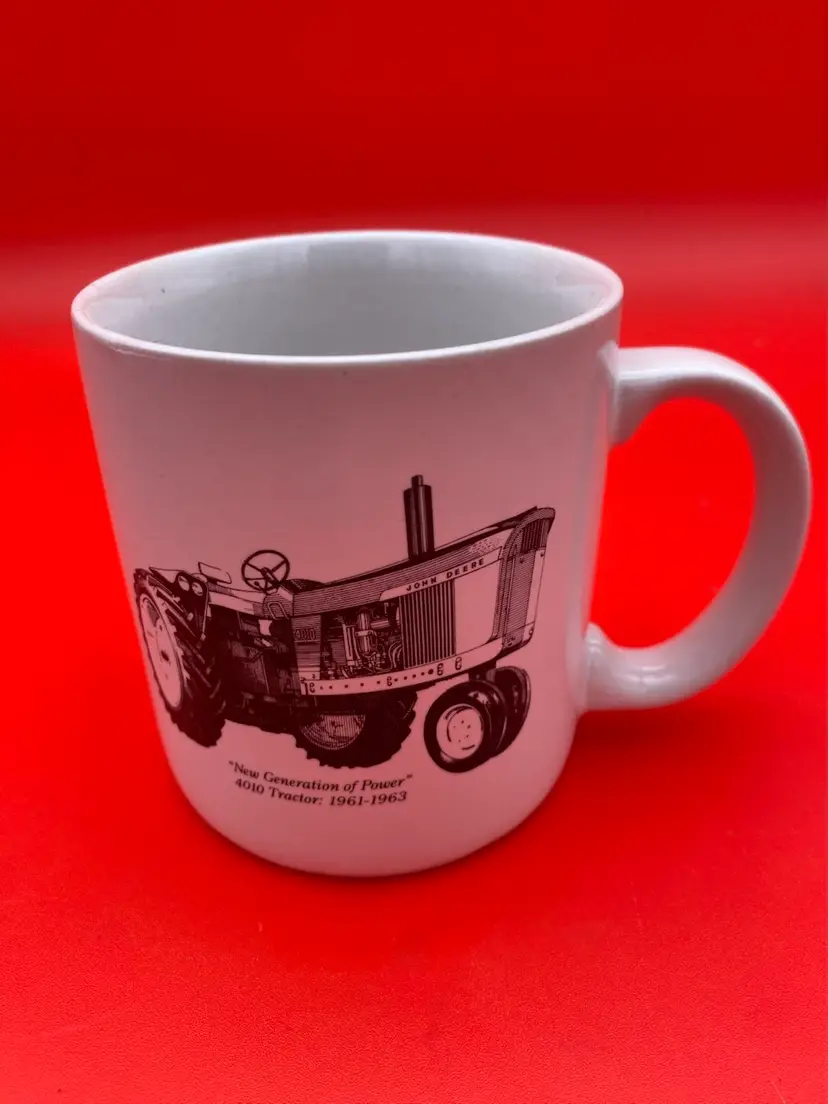You are purchasing one White Ceramic 'New Generation of Power - 4010 Tractor: 1961-1963' and 'Go with the Green; Go John Deere Service' Coffee Mug. This Mug is in good condition with minimal signs of wear.