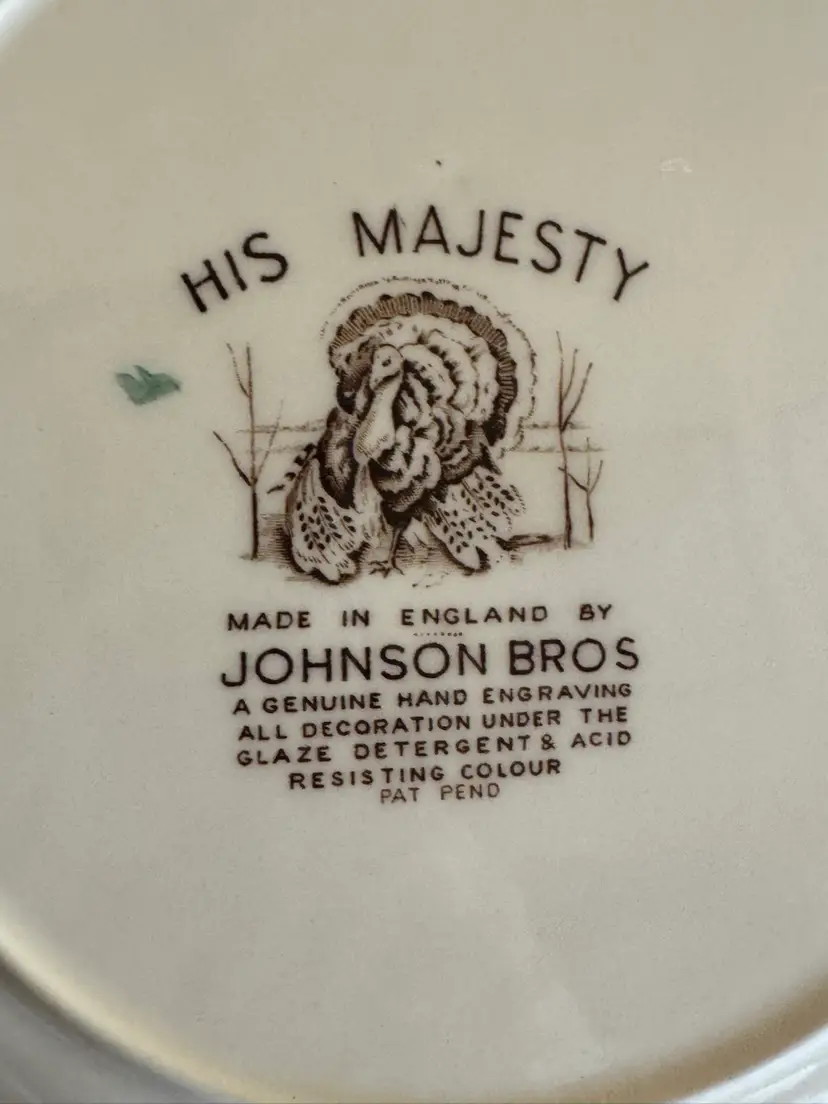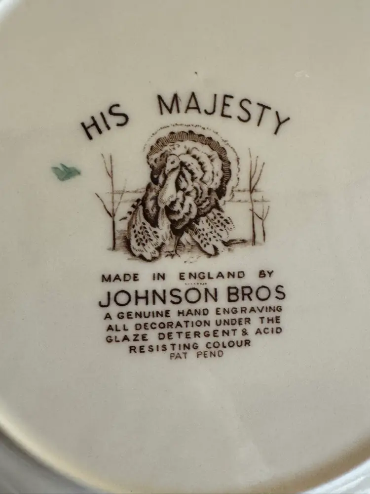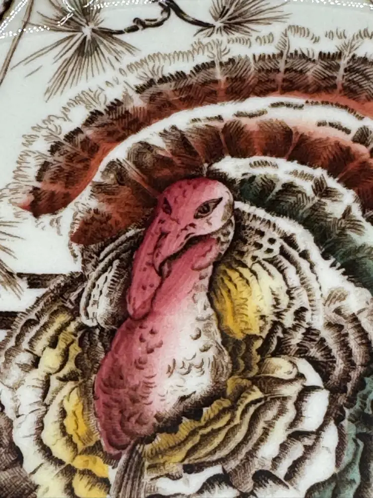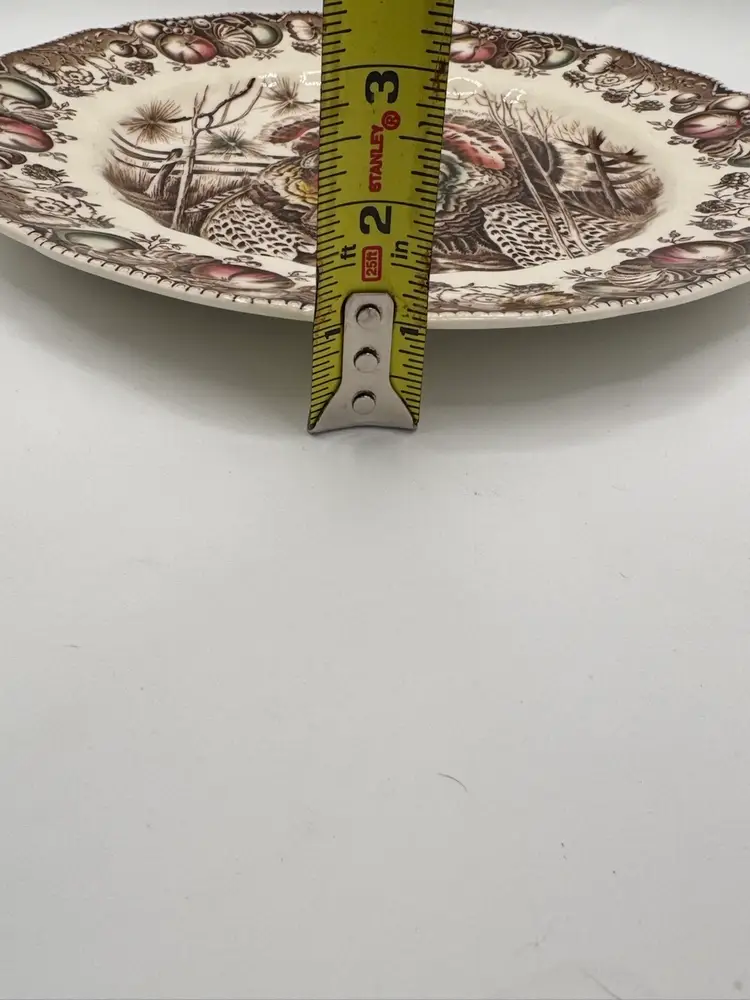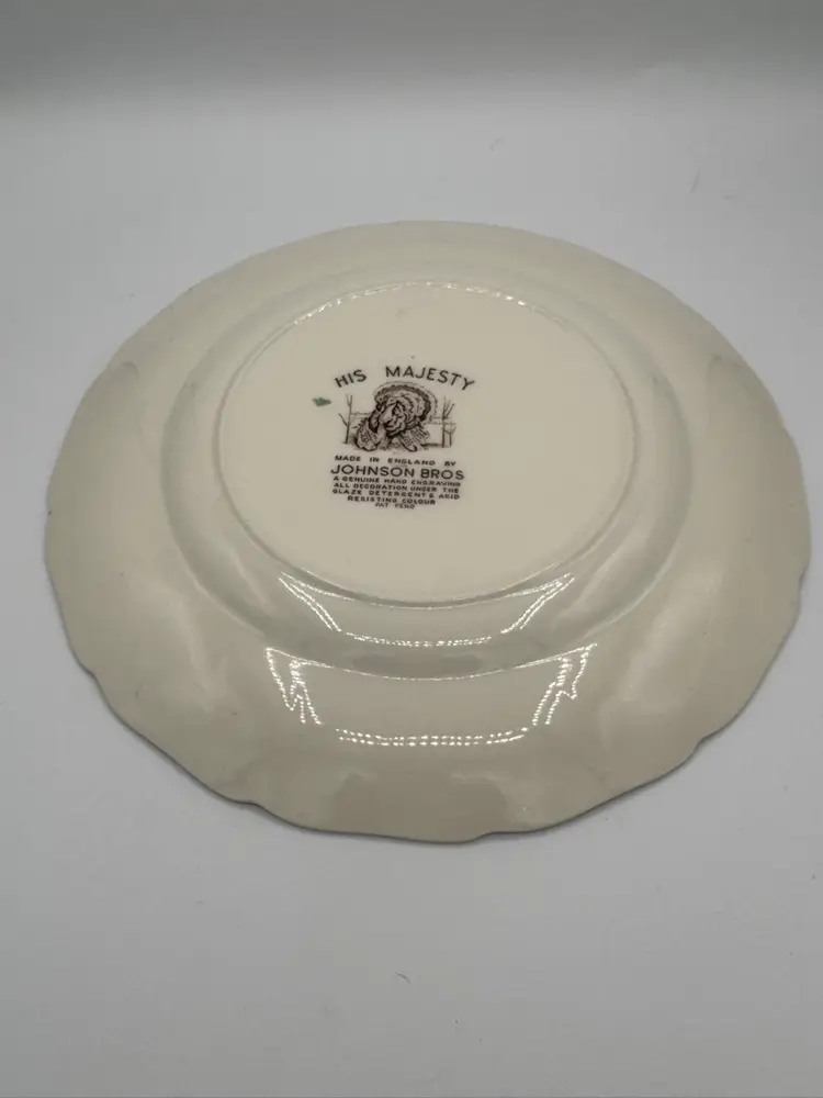 This is a gorgeous Johnson Bros Thanksgiving transferware plate that measures 10 1/2”. It is in excellent condition and appears to be unused.