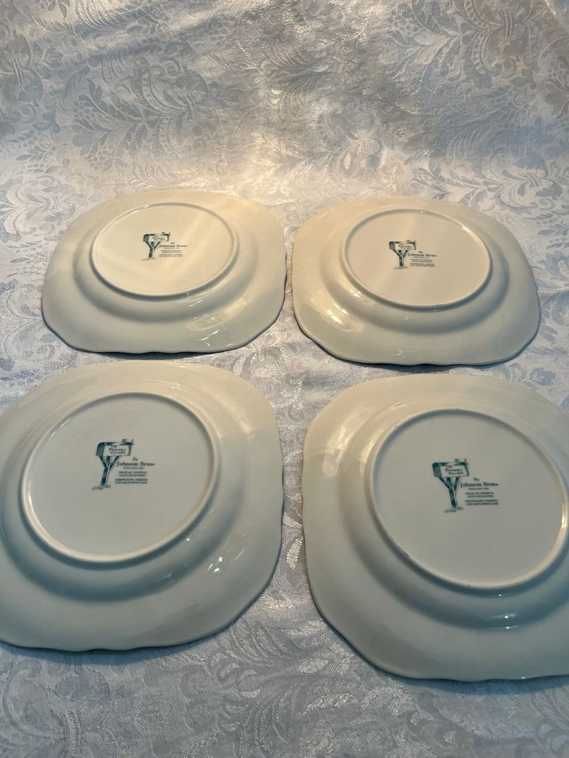 The series was particularly popular in the mid-20th century and is known for its transferware technique, which gives the images a detailed, slightly vintage look. The covered bridge scene is one of the most iconic and sought-after designs in the "Friendly Village" collection. Johnson Brothers' dinnerware is celebrated for its durability and classic appeal, making it a favorite among collectors and everyday users alike.