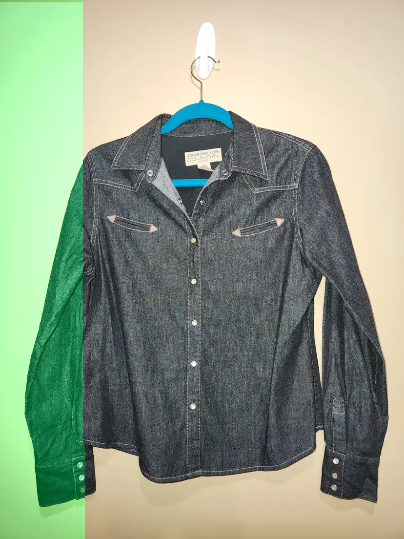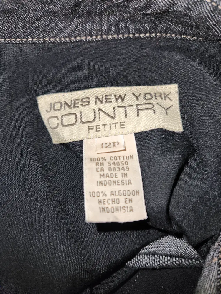 Jones New York Country Black Denim Western Style Button Down Shirt Size 12P