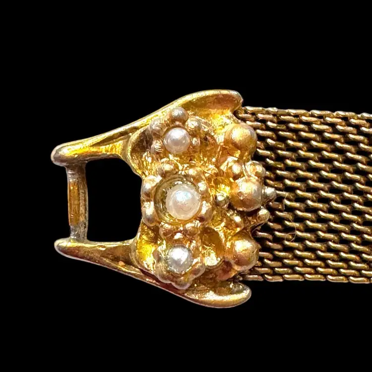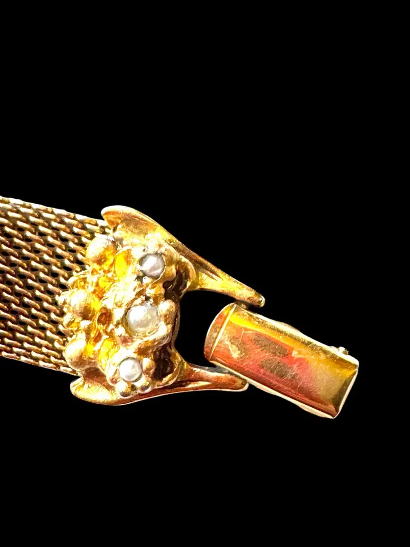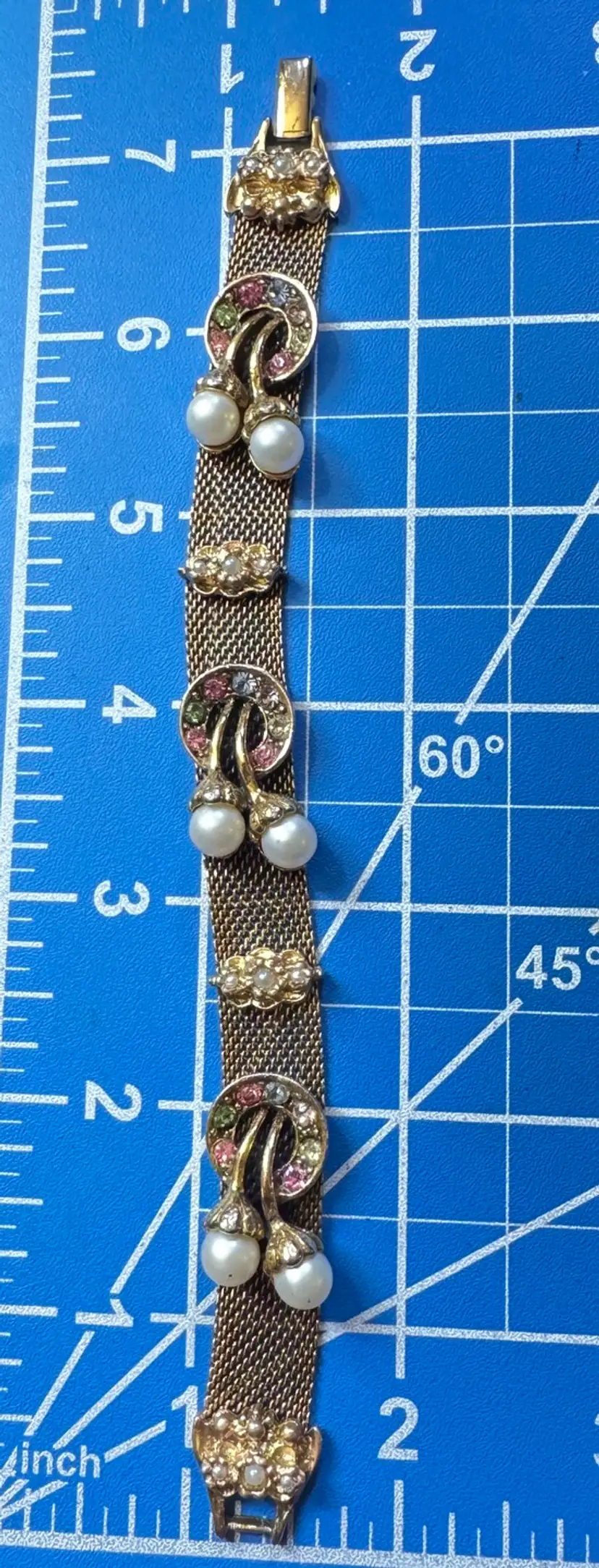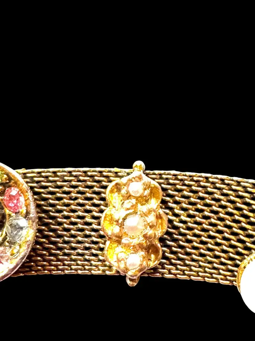 Unsigned 7.25” Judy Lee mesh bracelet in excellent condition with all its stones and faux pearls. It needs a little cleaning but all the stones and faux pearls look good❣️❣️