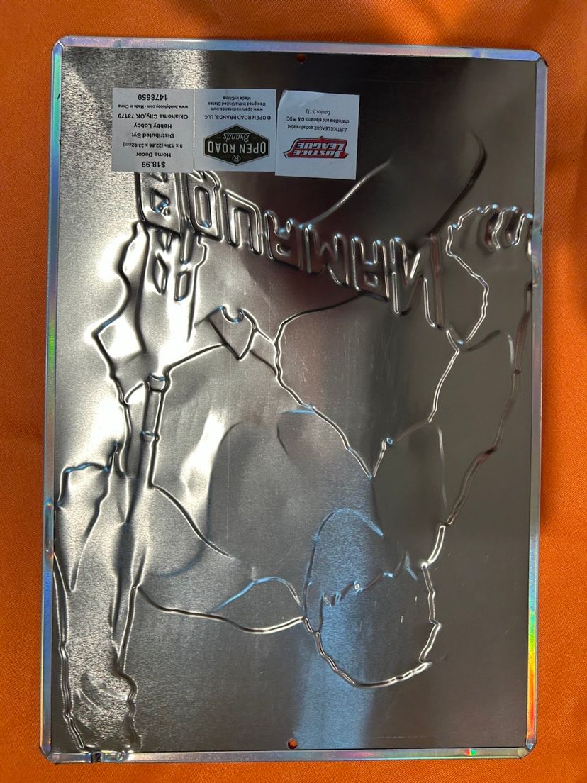 For sale is a embossed Justice Leagues Aquaman tin sign.