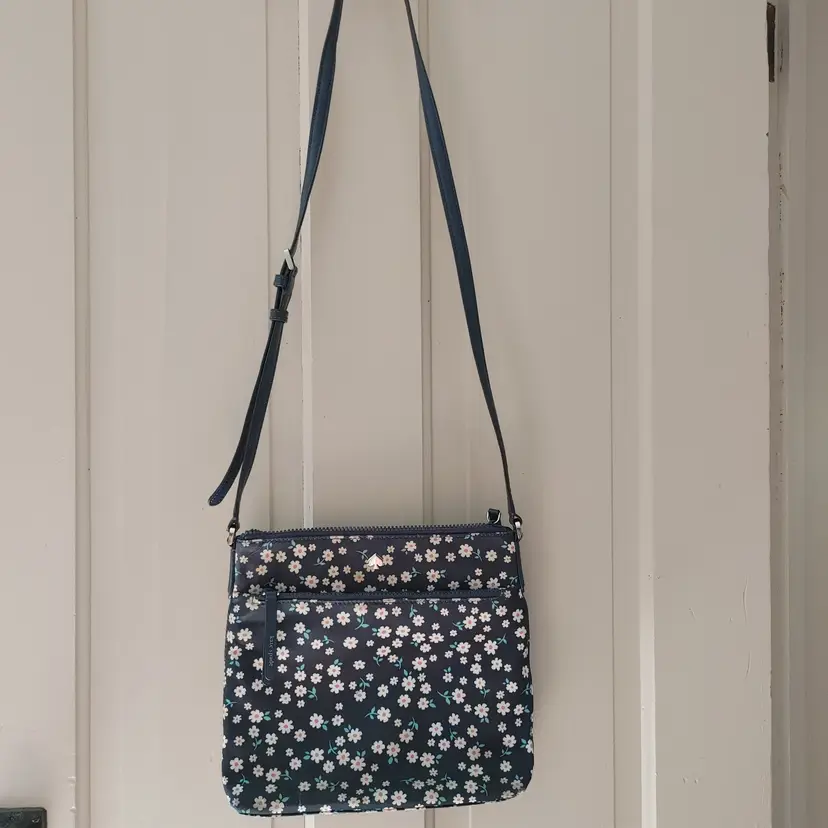 Kate Spade navy floral bag. Like new condition. Dimensions: W 11, H 10, D 1.5