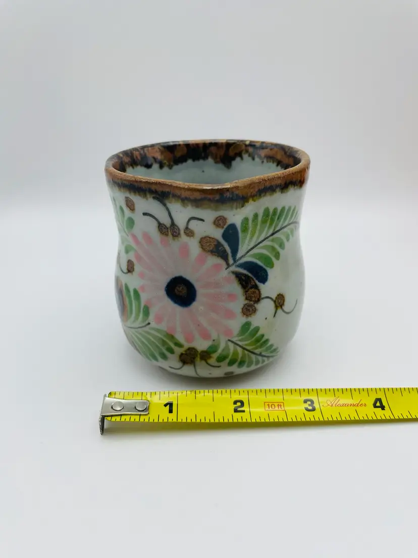 Ken Edwards Pottery Creamer/Pitcher 3.3” Tall Pink Flower El Palomar Mexico Please see pictures for measurements.