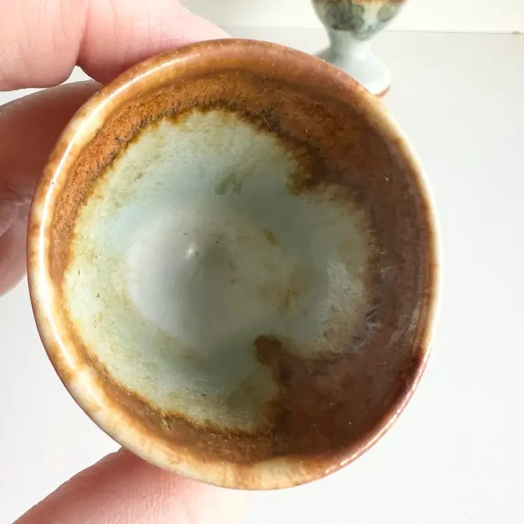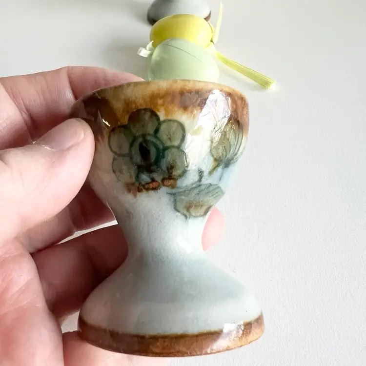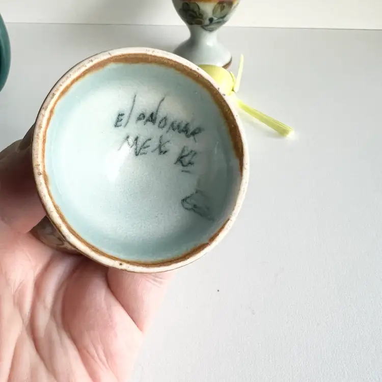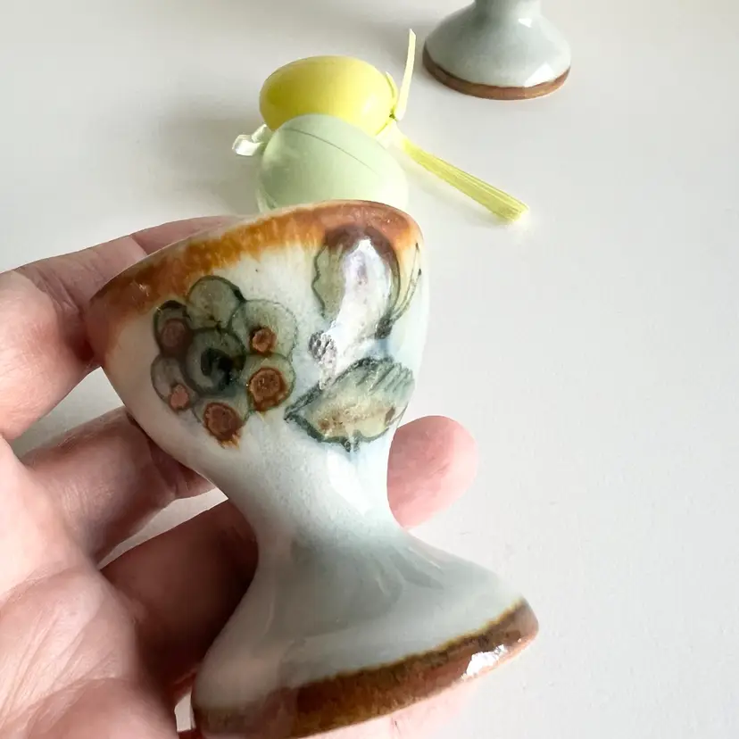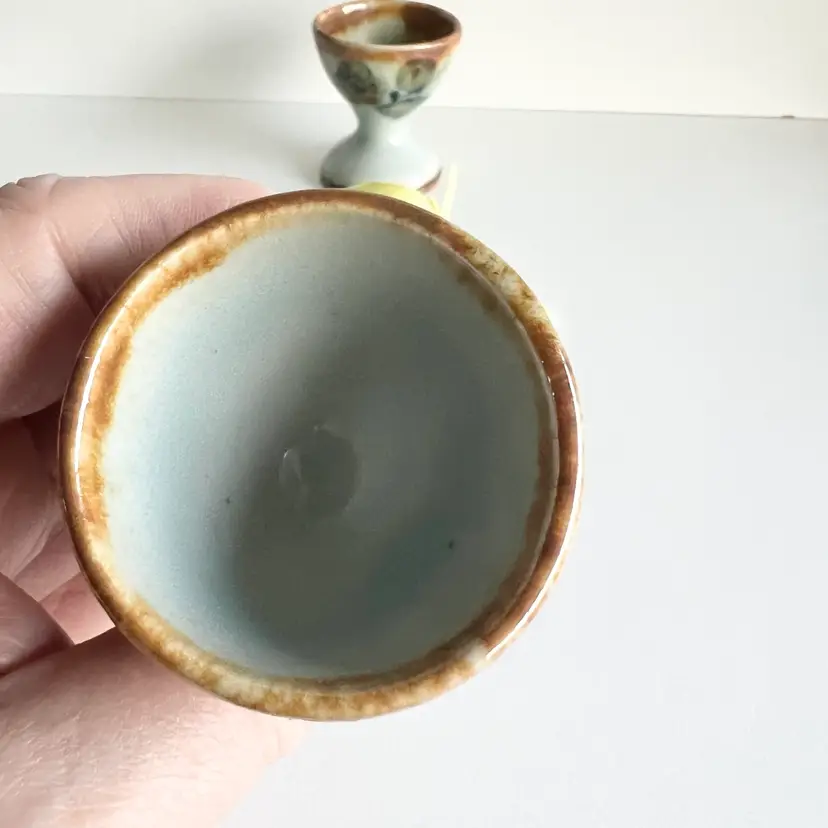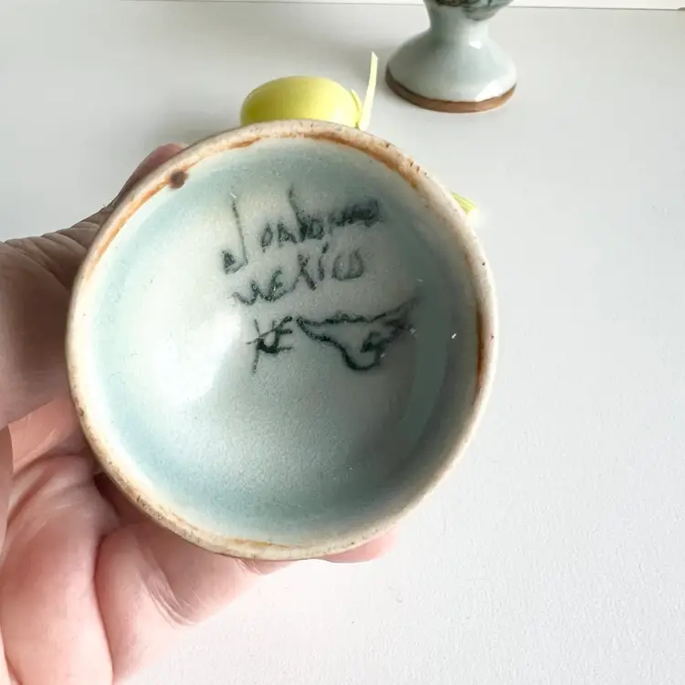 The sweet Tonala egg cups were made by Ken Edwards – a very collectible Mexican potter. Perfect for that Easter morning breakfast. 2 1/4 inches tall by 1 3/4 inches wide. no chips or cracks. Ships from Canada.