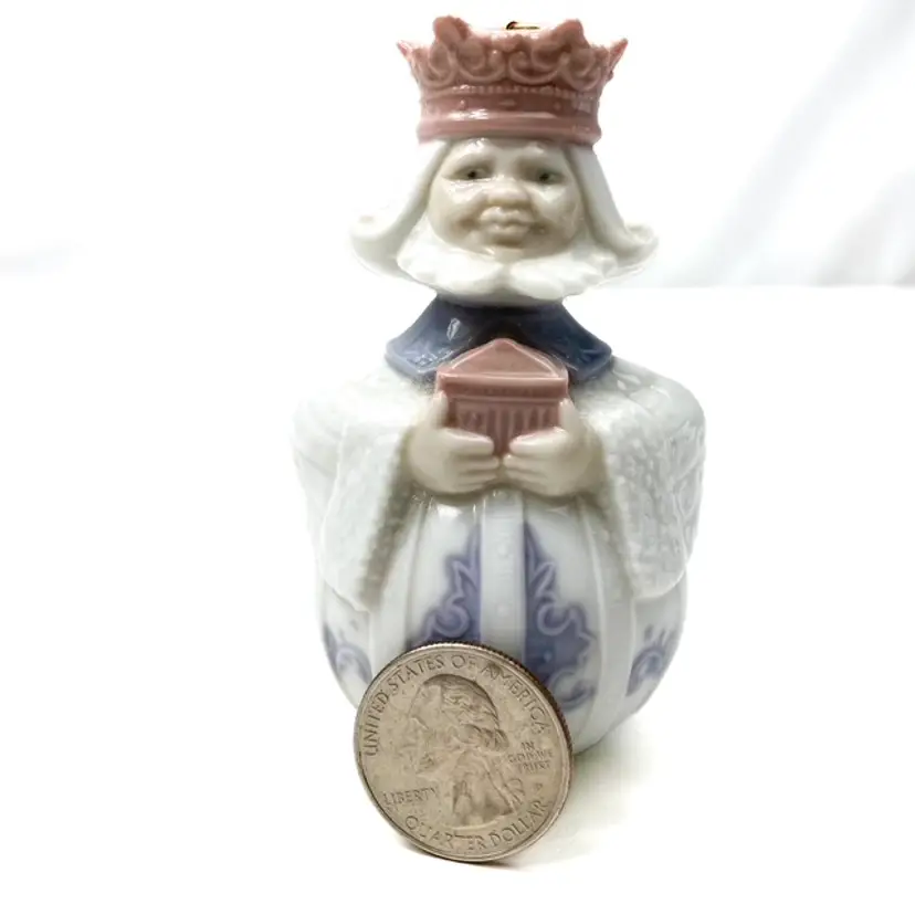 King Melchior measures approximately 3.5" tall and is about 1/75" wide. Pre-owned in excellent condition- no chips or cracks. Issued in 1996. Original Box not included. Lladro catalog #6391