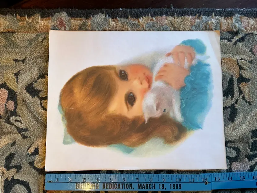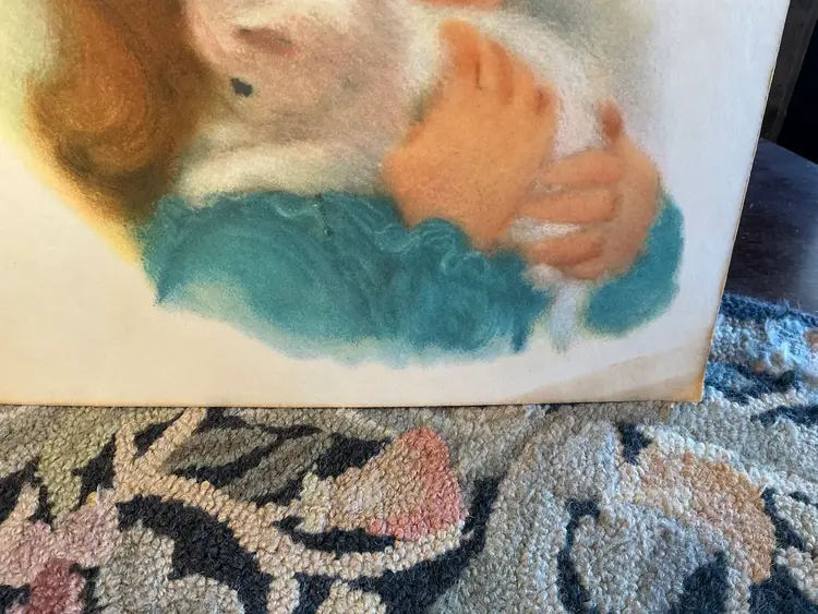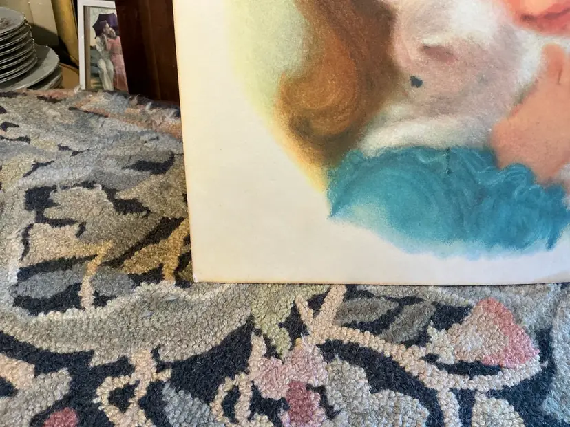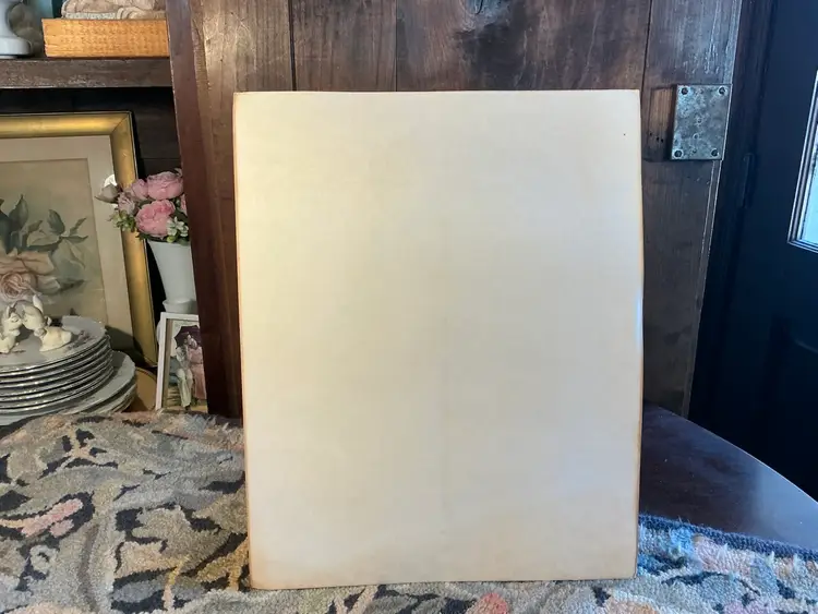 Condition: This vintage piece has some discoloration, there is a very old water stain on one bottom corner, there is wear to the corners of the piece.