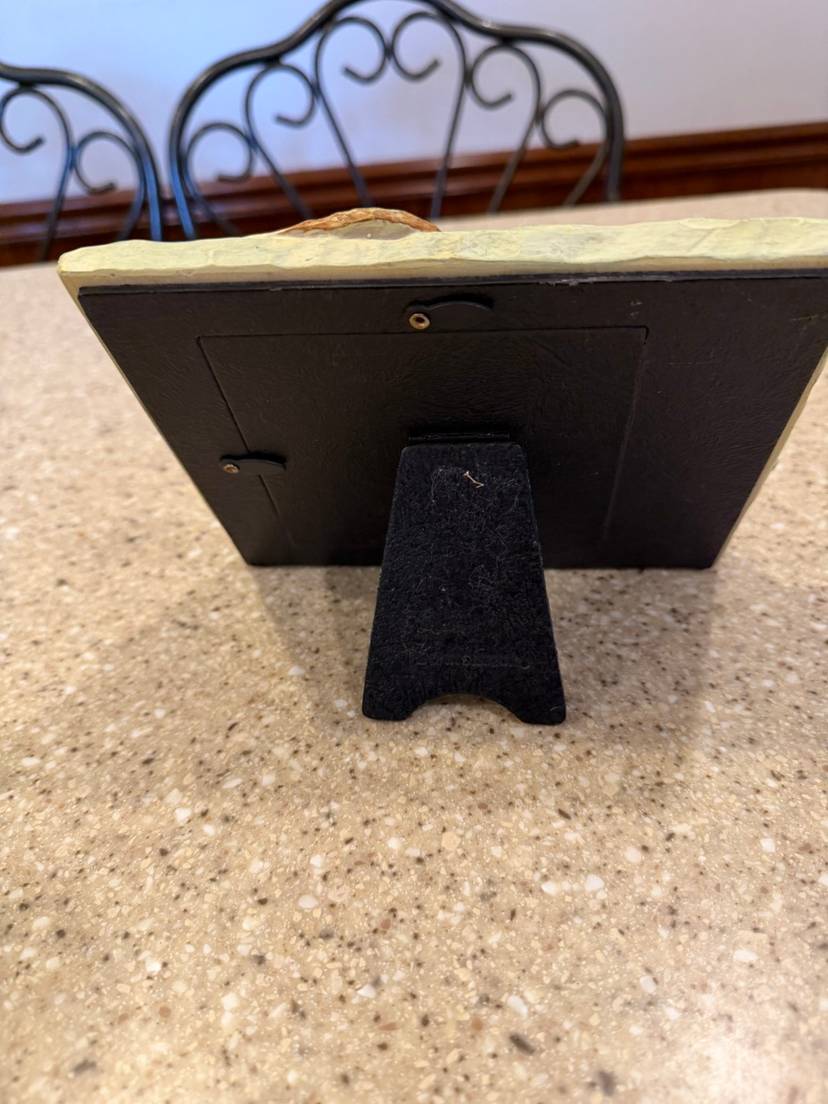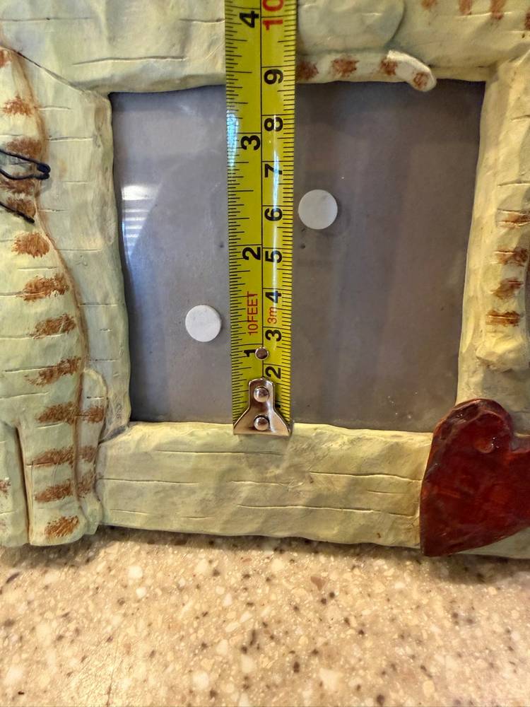 This is a Connoisseur brand cat-themed picture frame. The frame is a "Quirky Kitty Cats Big Heart Standing Resin Picture Frame" and holds a 4x4 inch photo. Cross posted.